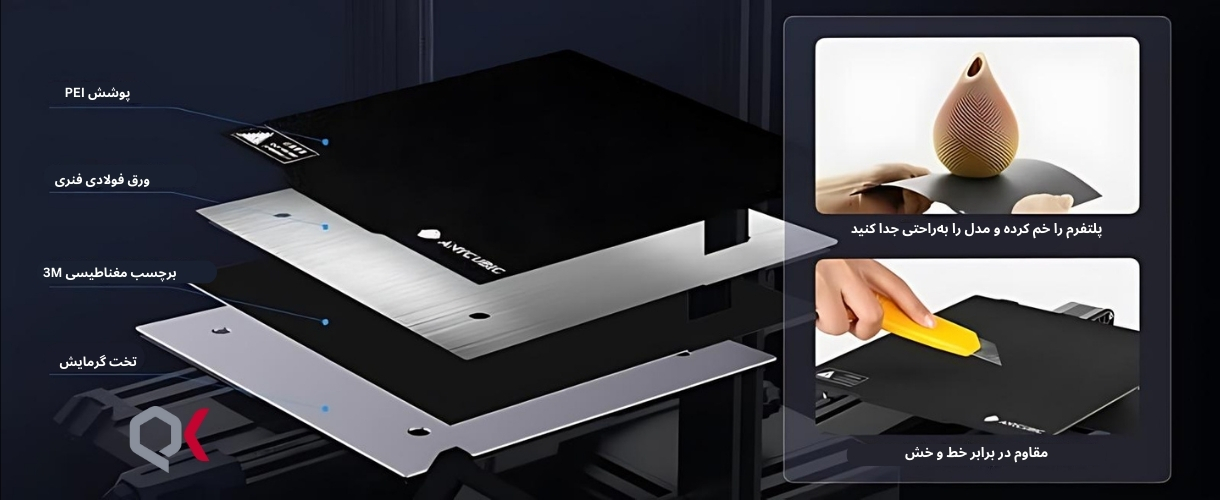 پلتفرم ساخت مغناطیسی فولادی با قابلیت جداسازی آسان مدل از سطح چاپ
