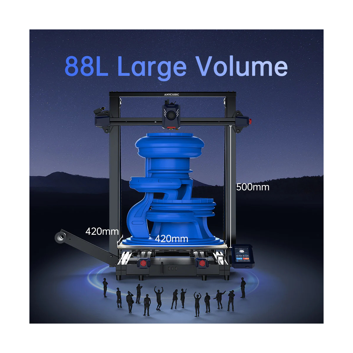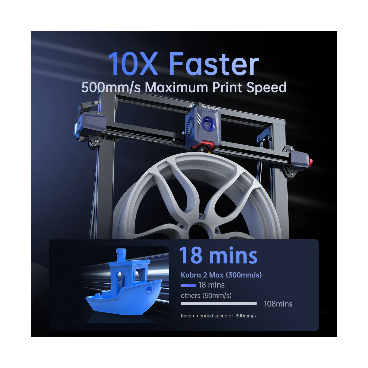 ابعاد چاپ در اصطلاح به حجمی گفته میشود که پرینتر سه بعدی قابلیت چاپ آن را دارد. ابعاد چاپ پرینتر سه بعدی kobra 2 max برابر با 420x420 و ارتفاع 500 میلیمتر است و تا حجم حدود 88 لیتر میتواند مدلهایی را بسازد. این ویژگی، باعث میشود شما به صورت یک تکه قطعات مدنظرتان را چاپ کنید. در مقایسه با محصولات مشابه موجود در بازار، پرینتر سه بعدی kobra 2 max با سرعت چاپ 500 میلیمتر بر ثانیه، زمان چاپ را تا 3 روز و 17 ساعت کاهش مییابد و در زمان شما بسیار صرفه جویی میکند.