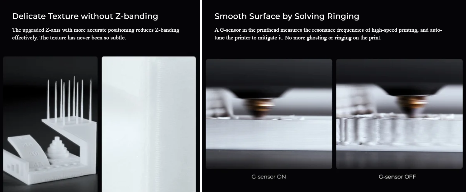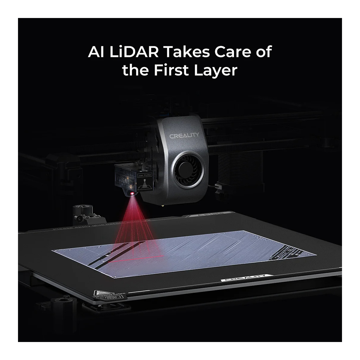 سیستم Al LiDAR با اسکن لیزری دقیق، سطح ساخت را بهصورت سهبعدی شناسایی میکند و محور Z را بهطور خودکار تنظیم مینماید. این فناوری با جبران ناهمواریهای جزئی، فاصله نازل تا بستر را در تمام نقاط یکسان نگه میدارد و از این طریق، لایه اولی کاملاً صاف و بدون نقص میسازد. همچنین در طول چاپ، عملکرد نازل را زیر نظر دارد و در صورت بروز مشکل، هشدار میدهد. نتیجه این سیستم، چاپهایی با دقت بالا، لبههای تمیز و موفقیت بیشتر در اولین تلاش است.