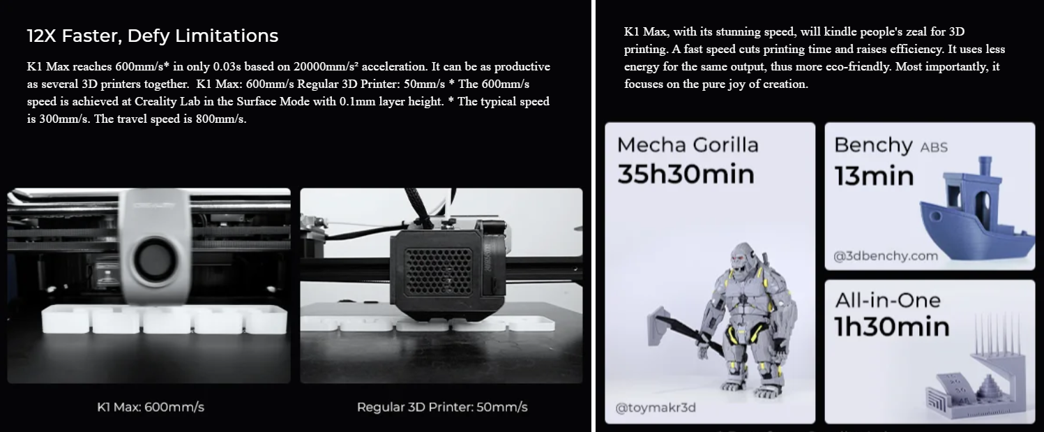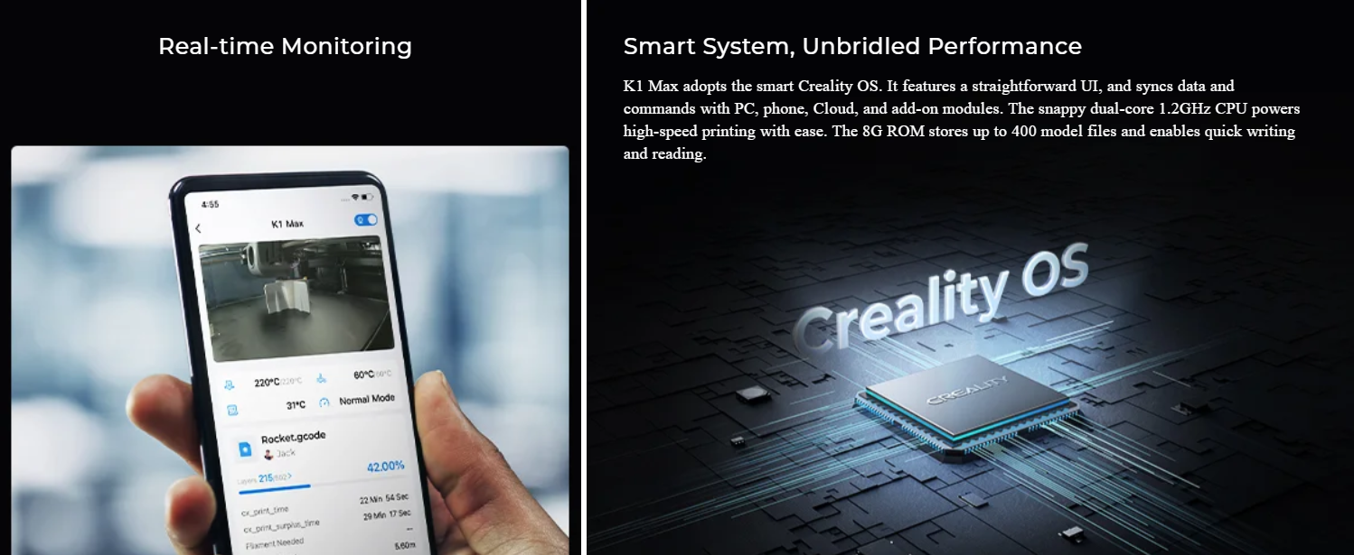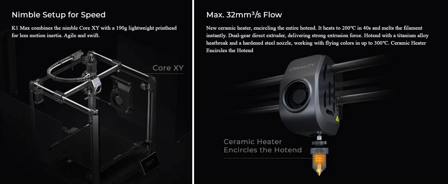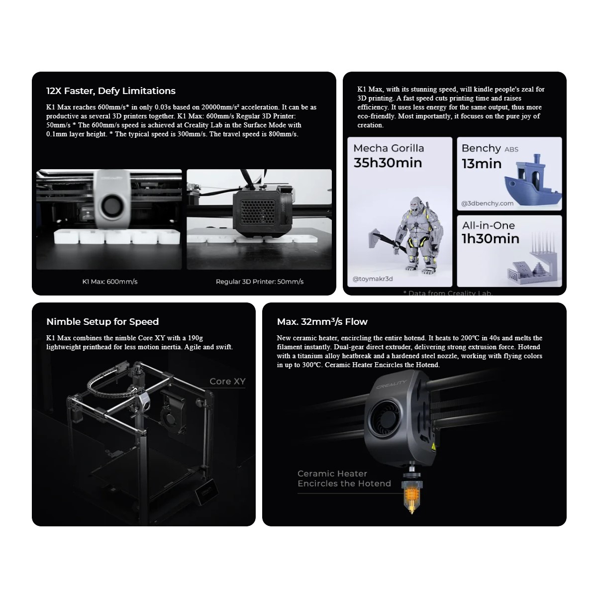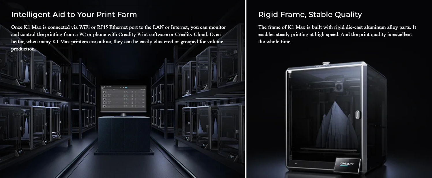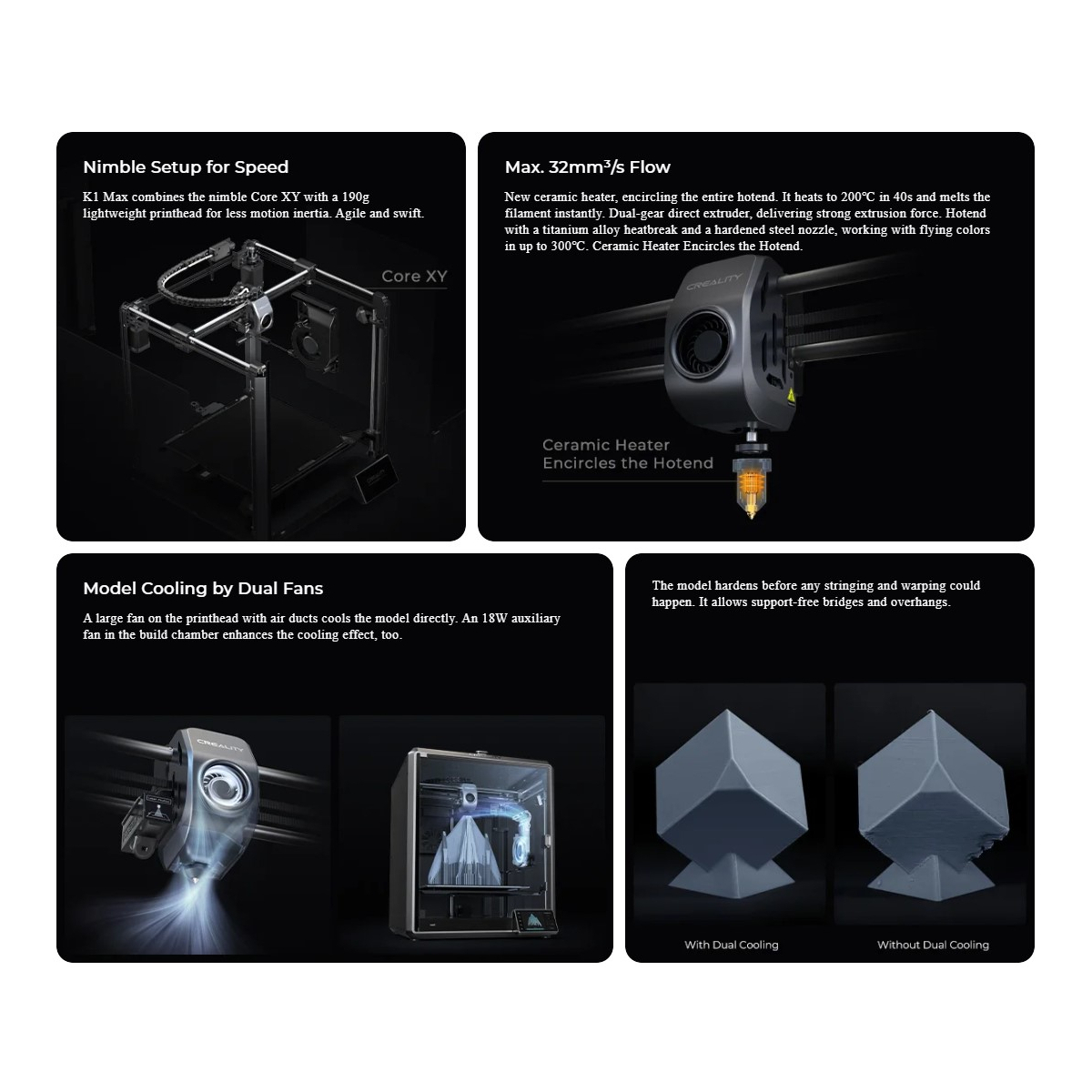 ویژگیهای پرینتر سه بعدی کریلیتی مدل K1 MAX AI FAST برند CREALITY