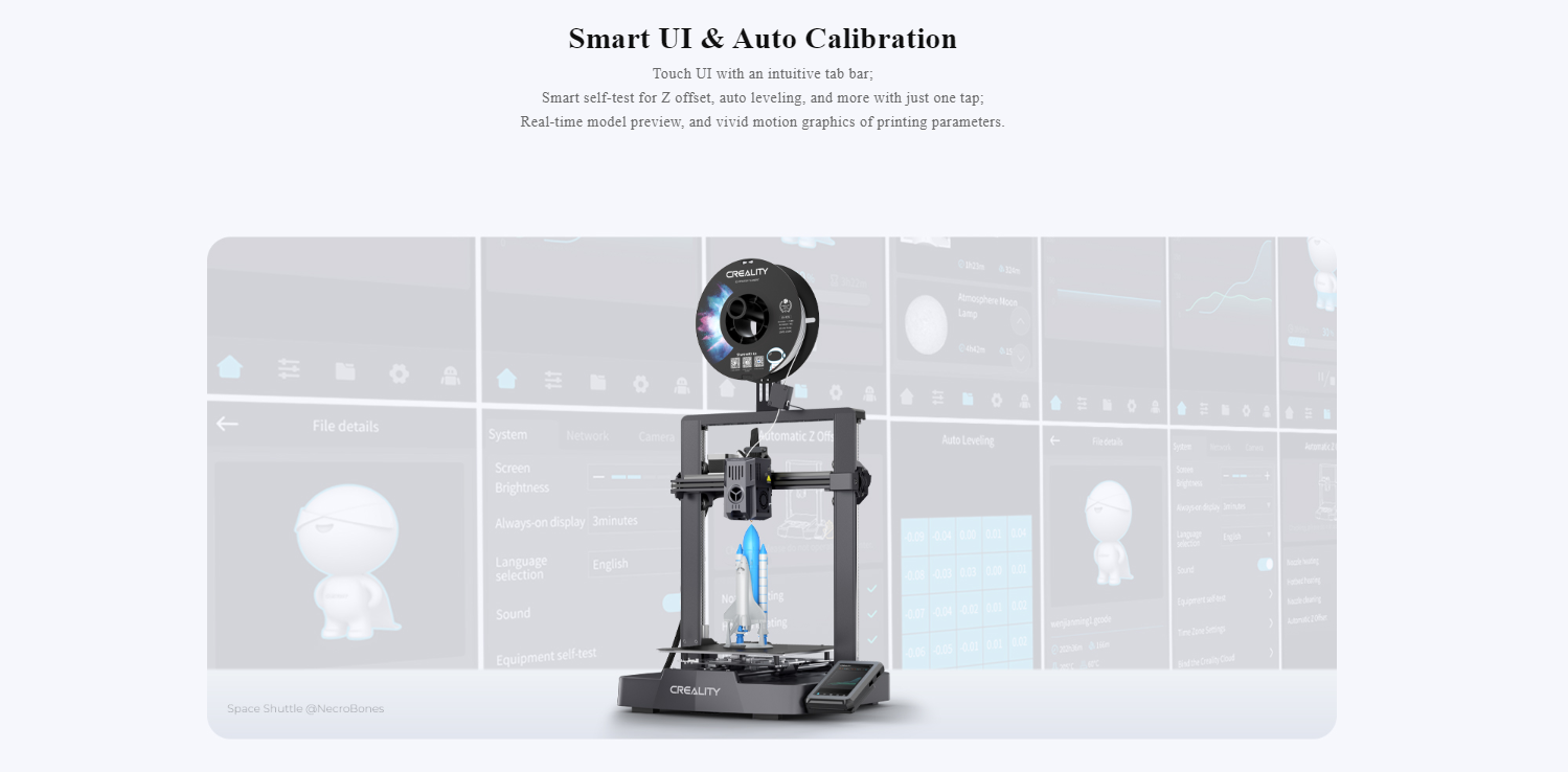 پرینتر سهبعدی Ender-3 V3 KE با بهرهگیری از سیستم تنظیم خودکار سطح بستر و محور Z، بهطور دقیق فاصله نازل تا صفحه چاپ را تنظیم میکند. این کالیبراسیون هوشمند، چسبندگی مناسب اولین لایه و سطحی یکنواخت را تضمین کرده و نیاز به تنظیمات دستی را حذف میکند؛ نتیجهاش شروعی بیدردسر و بدون خطا در هر پروژه چاپی است.