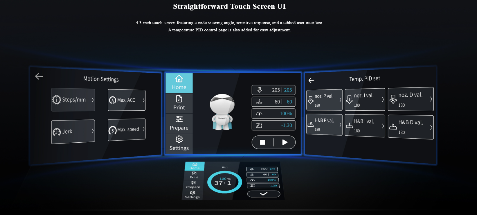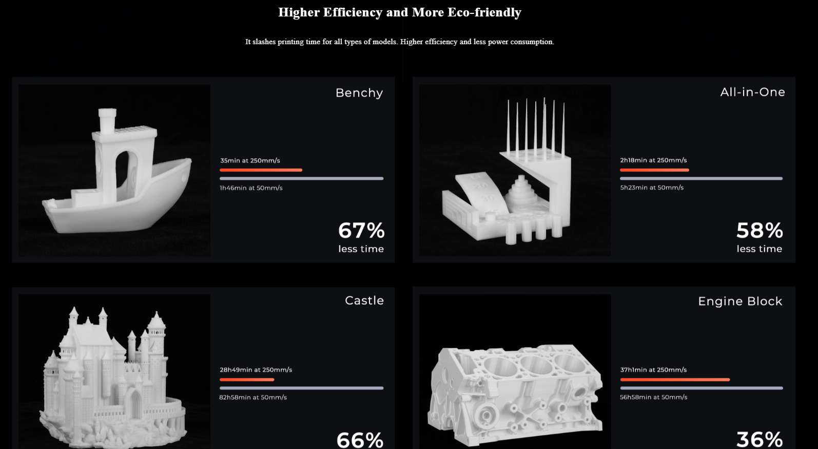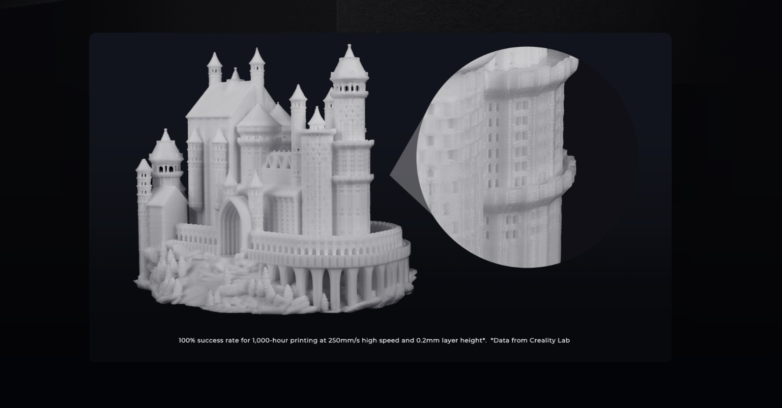 این پرینتر سه بعدی با بهرهمندی از سیستم حرکت ارتقاء یافته، شتابی خیرهکننده معادل 2000 میلیمتر بر ثانیه مربع و سرعتی فوقالعاده تا 250 میلیمتر بر ثانیه را ارائه میدهد که 5 برابر سریعتر از مدلهای پیشین است. این پرینتر سه بعدی از دقت و ظرافت بالایی نیز برخوردار است. هر محور X/Y/Z توسط یک موتور پلهای با دقت بالا هدایت میشود و یک محور انتقال فولادی، دو تسمه محور Y را به طور کامل همگامسازی میکند. موتور 42-48 محور Y با گشتاور بالا، حرکتی روان و دقیق را تضمین میکند و به شما اطمینان میدهد که چاپ نهایی با بالاترین کیفیت ارائه خواهد شد.