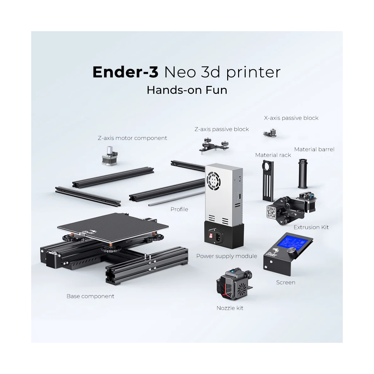 ایدههایتان را به سرعت و با کمترین هزینه با پرینترهای سه بعدی بسازید و قبل از تولید نهایی آنها را بیازمایید! این امر به سادگی با پرینتر کریلیتی مدل ENDER-3 NEO ممکن شده است. قابلیتهای متعدد پرینتر فیلامنتی ENDER-3 NEO مانند تراز 16 نقطهای، ابعاد چاپ بزرگ، سرعت چاپ مناسب و سایر ویژگیهایی که در ادامه به آنها پرداختهایم، آن را به یکی از پرینترهای محبوب برای افراد مبتدی و حرفهای تبدیل کرده است. در ادامه این مطلب به سایر قابلیتهای پرینتر سه بعدی CREALITY مدل ENDER-3 NEO اشاره کردهایم: