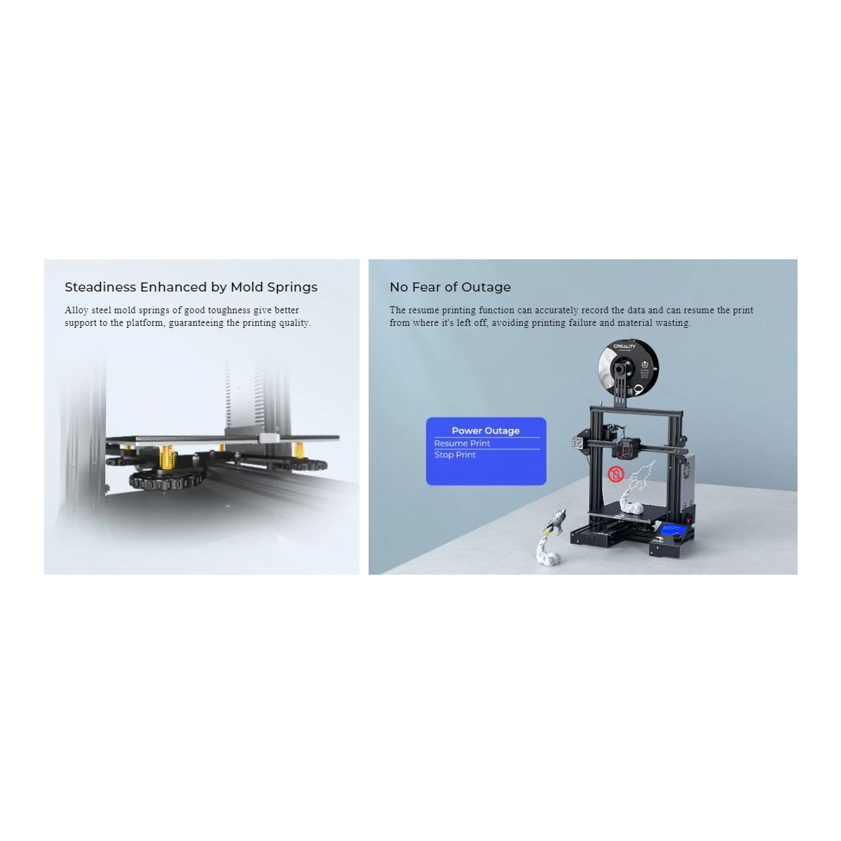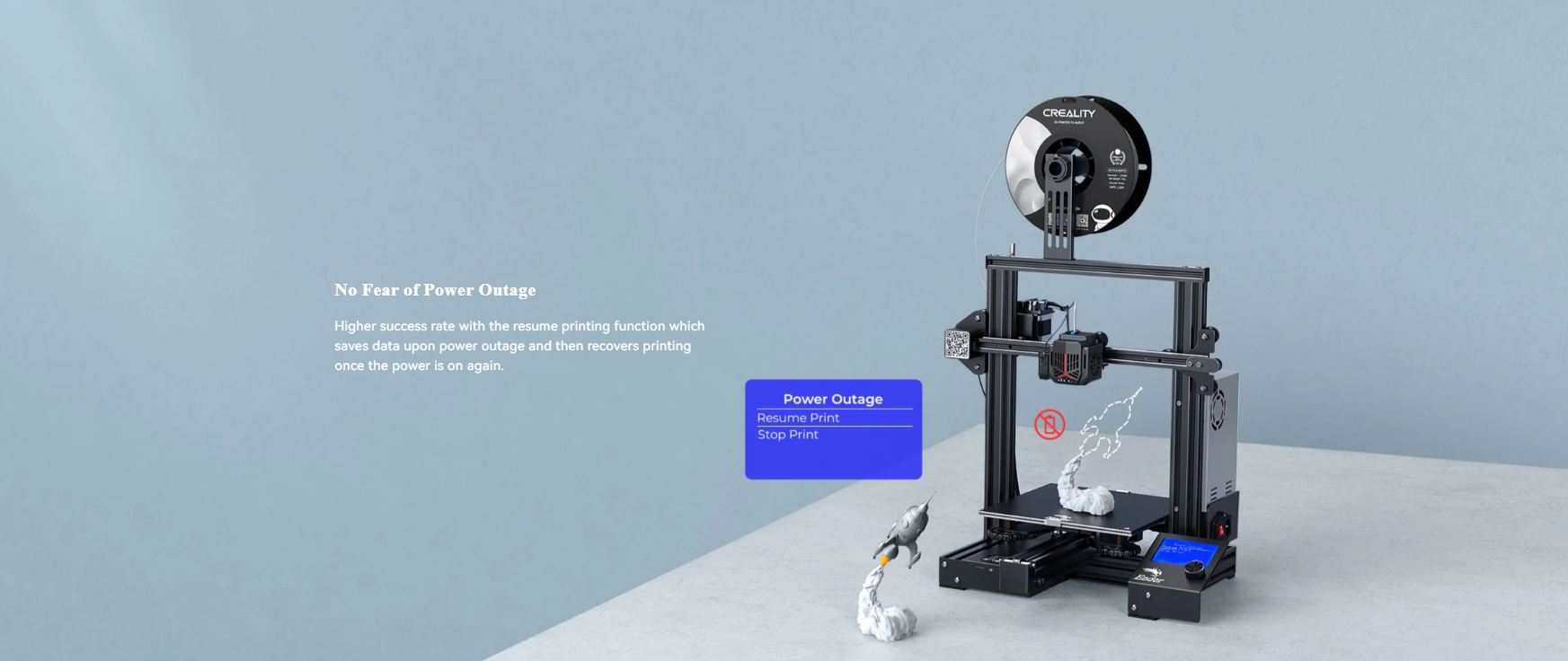 سنسور قطع برق در پرینتر سه بعدی کریلیتی ENDER-3 NEO، قطعهای است که به طور خودکار قطع شدن ناگهانی برق را تشخیص میدهد. این سنسور در صورت قطعی برق اقدامات لازم را برای جلوگیری از آسیب به پرینتر و قطعه در حال چاپ انجام میدهد. پرینتر بلافاصله فرآیند چاپ را متوقف میکند تا از آسیب دیدن نازل، فیلامنت و قطعه در حال چاپ جلوگیری شود. سنسور قطع برق با توقف بهموقع فرایند چاپ و انجام اقدامات لازم، از آسیب دیدن پرینتر و قطعه در حال چاپ در اثر قطع ناگهانی برق جلوگیری میکند.