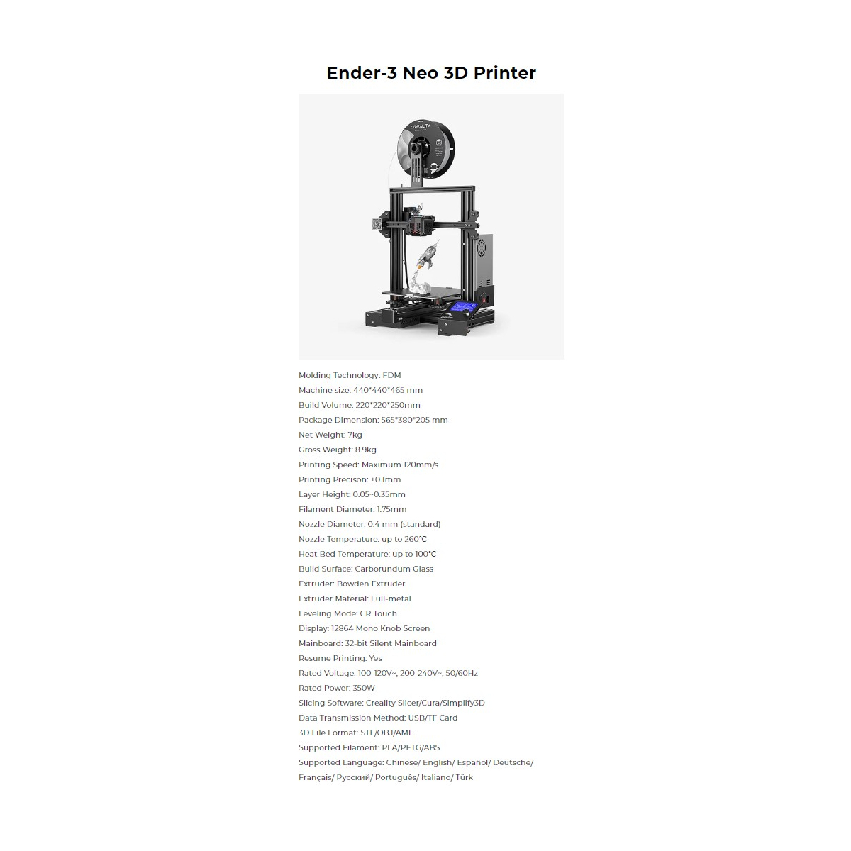 ویژگیهای پرینتر سه بعدی کریلیتی مدل ENDER-3 NEO برند CREALITY