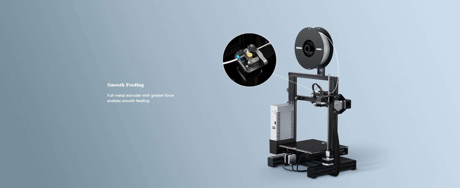 در پرینتر سهبعدی CR-10 SE از سیستم اکستروژن Bowden استفاده شده است که با جداسازی موتور از هد چاپ، وزن را کاهش داده و حرکتی سریعتر و روانتر فراهم میکند. فیلامنت از طریق لولهای توخالی به نازل منتقل میشود تا هد چاپ سبکتر و چاپ با دقت بیشتری انجام شود. همچنین، اکسترودر تمامفلزی این مدل، با توانایی تحمل دماهای بالا و توزیع یکنواخت حرارت، به بهبود جریان فیلامنت، کاهش انسداد و تولید چاپهایی دقیق و یکنواخت کمک میکند.