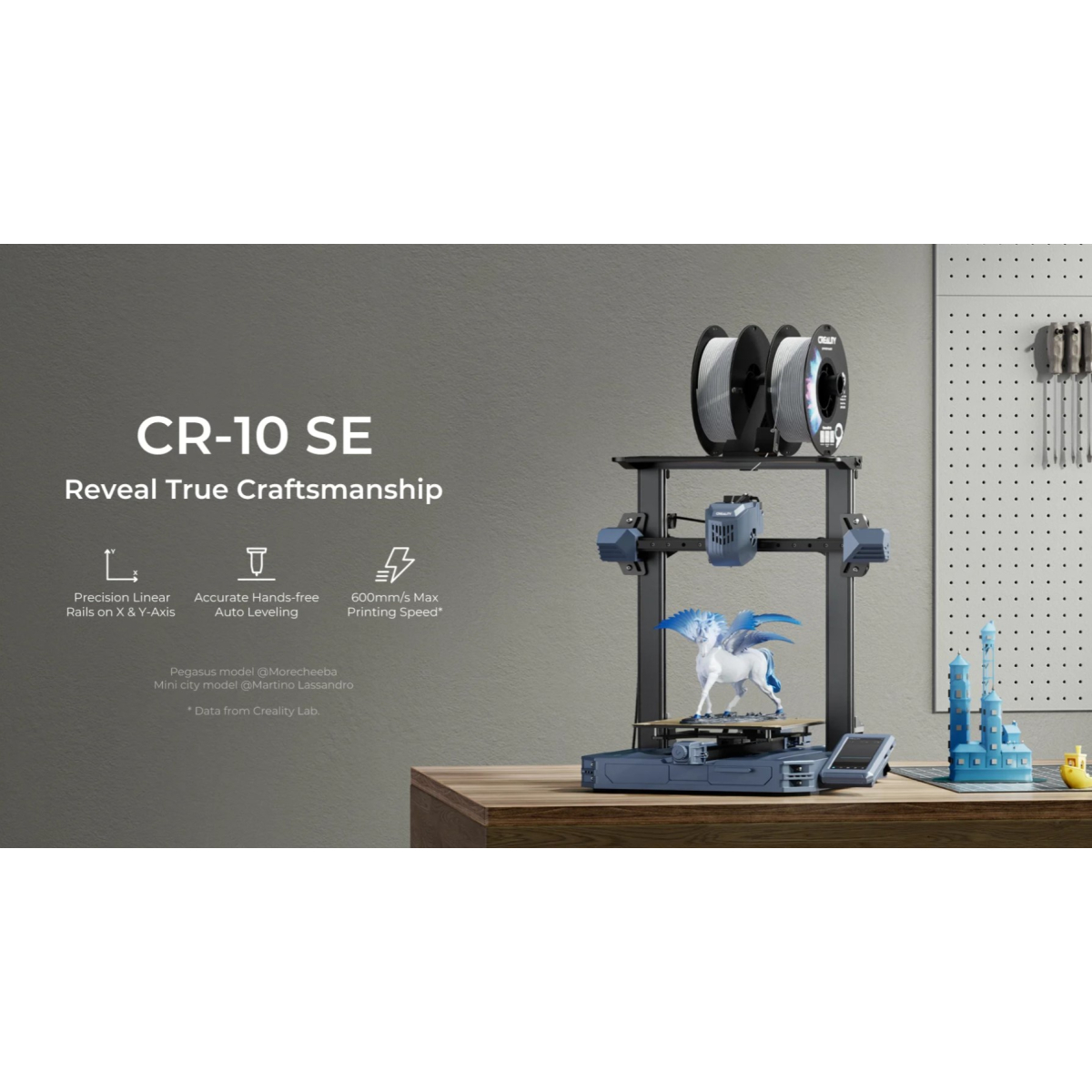 پرینتر سهبعدی CR-10 SE با ابعاد چاپ بزرگ 490×470 میلیمتر در ارتفاع 625 میلیمتر، امکان ساخت مدلهای بزرگ و پیچیده را بدون نیاز به مونتاژ قطعات فراهم میکند؛ این ویژگی برای پروژههای صنعتی و دقیق بسیار ارزشمند است و حتی اجازه چاپ همزمان چند مدل را میدهد. در کنار این، سرعت چاپ چشمگیر 600 میلیمتر بر ثانیه (تست شده با Hyper PLA) باعث میشود تا بتوانید در زمان صرفهجویی کرده و ایدههای خود را سریعتر به واقعیت تبدیل کنید.