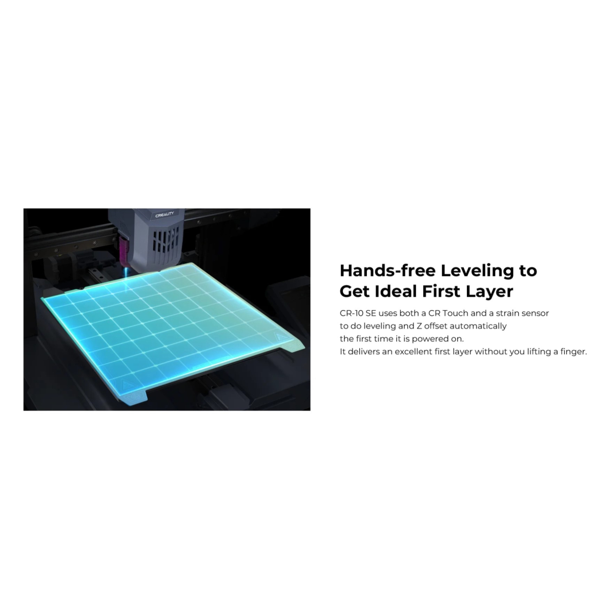 هات بد CR-10 SE با گرمایش یکنواخت تا 110 درجه، چسبندگی عالی و کاهش تابخوردگی را تضمین میکند، مخصوصاً برای فیلامنتهای حساس مثل ABS. سیستم کالیبراسیون اتوماتیک نیز تراز دقیق پلتفرم را بدون نیاز به تنظیم دستی فراهم میکند تا چاپی سریعتر و بدون نقص داشته باشید.