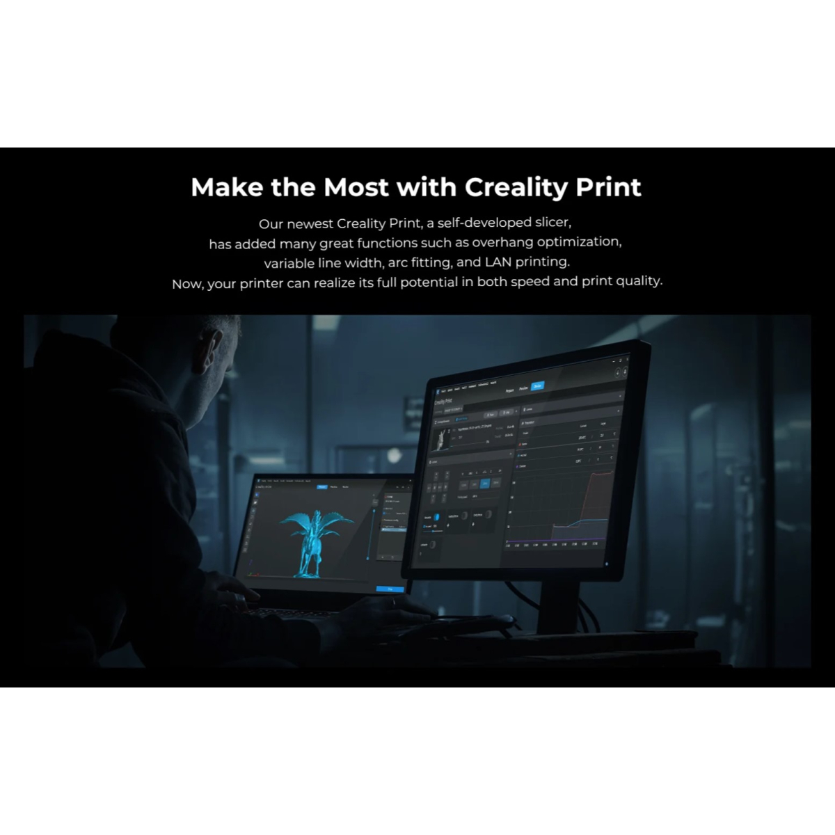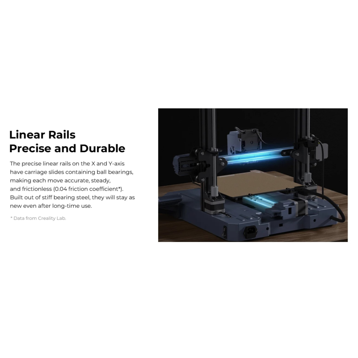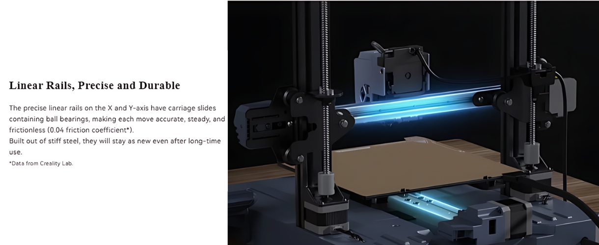 تنظیم خودکار دقیق محور Z در CR-10 SE، فاصله نازل تا صفحه چاپ را بهینه میکند تا اولین لایه با چسبندگی و ضخامت مناسب چاپ شود و از آسیب نازل و صفحه جلوگیری کند. ریلهای خطی فولادی دقیق در محورهای X و Y حرکتی روان، بیصدا و بدون اصطکاک فراهم میکنند که باعث چاپهایی با جزئیات ظریف و کیفیت بالا میشود.