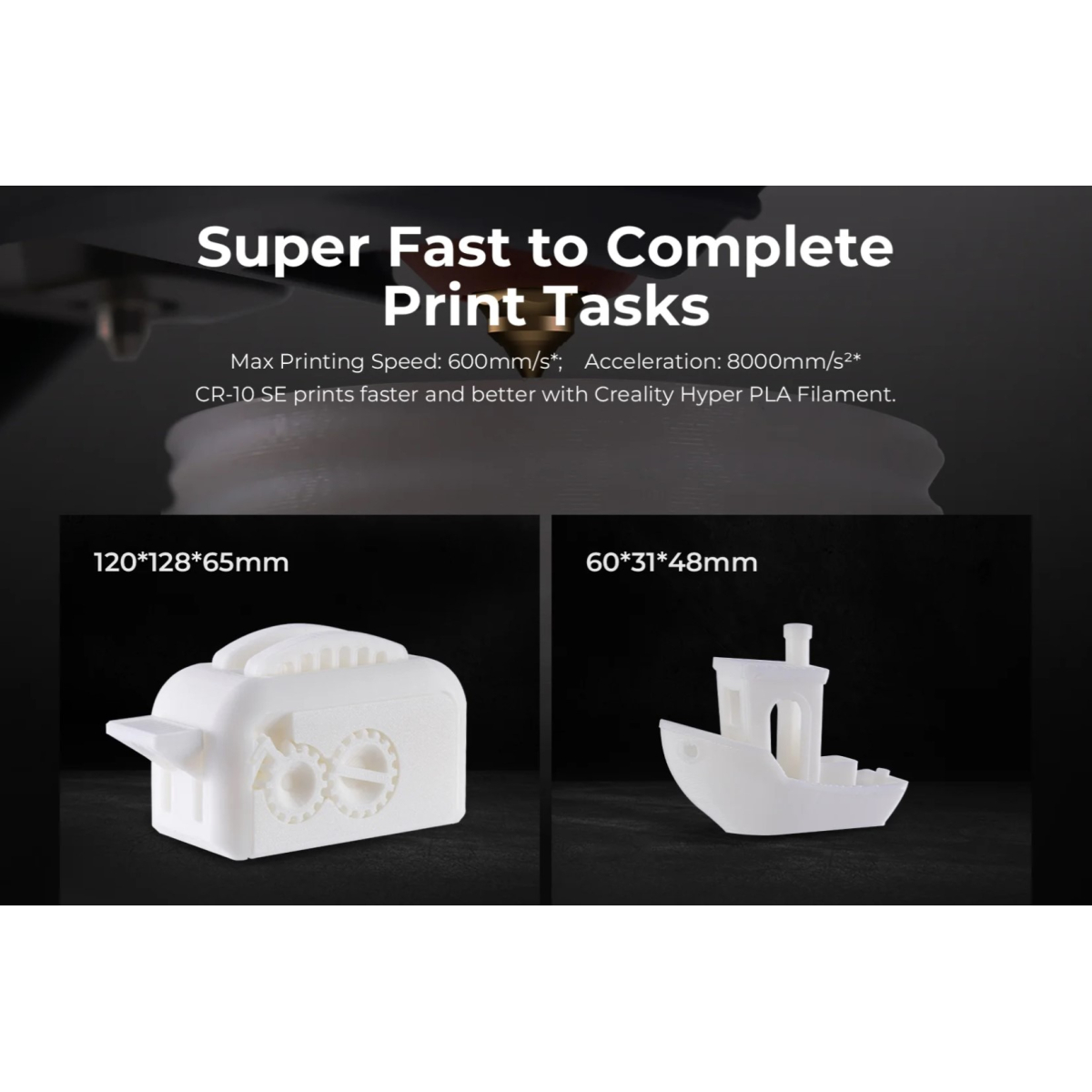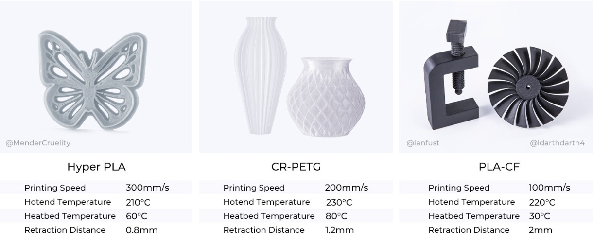 سرعت چاپ تا 600 میلیمتر بر ثانیه (تست شده با Hyper PLA)