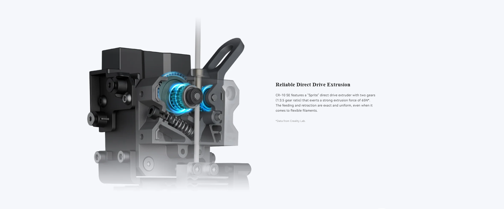 وظیفه اکسترودر در چاپگرهای 3D، انتقال فیلامنت به نازل است. پرینتر سهبعدی CR-10 SE با اکسترودر پیشرفته Sprite، کیفیتی بینظیر در چاپ ارائه میدهد. این اکسترودر قدرتمند، فیلامنت را با دقت و ظرافت بالا انتقال میدهد و باعث میشود تا به چاپهایی با جزئیات دقیق، سطوح صاف و بدون نقص دست پیدا کنید.