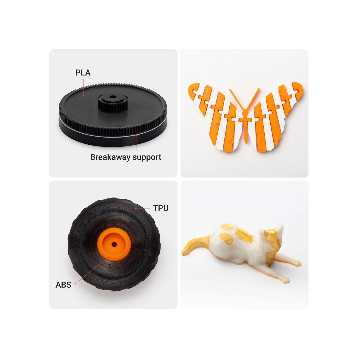 پرینتر سهبعدی Snapmaker J1 High Speed IDEX با فناوری Fused Filament Fabrication (FFF) و سیستم اکسترودر مستقل دوگانه (IDEX) طراحی شده است. این پرینتر برای چاپ مدلهای پیچیده و دقیق مناسب است و قابلیتهای متنوعی را در اختیار کاربران قرار میدهد.