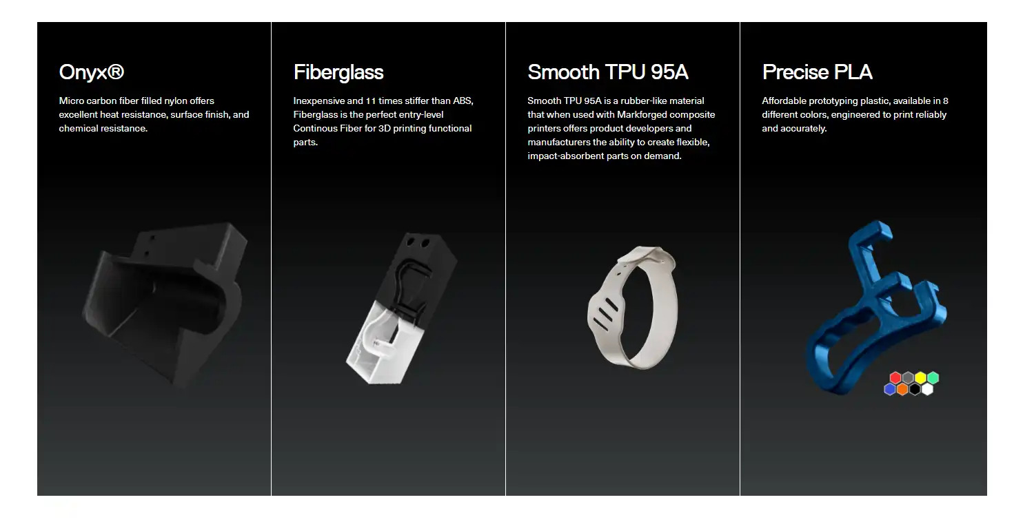 سازگاری با مواد Onyx، Fiberglass، Smooth TPU 95A، Precise PLA
