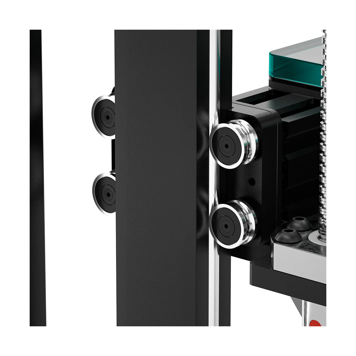 با استفاده از ریلهای دو محوره در این پرینتر، حرکت صاف و دقیقی برای هد چاپ فراهم میشود. این ویژگی بهبود قابل توجهی در کیفیت چاپ و دقت حرکتی ارائه میدهد. ریلهای راهنما در چاپگرهای سهبعدی به عنوان سیستمهای حرکتی عمل میکنند که حرکت هد چاپ یا بستر چاپ را هدایت میکنند. ریلهای راهنمای دو محوره به معنای استفاده از سیستم ریلها و بلبرینگهایی است که در دو محور X و Y بهطور همزمان حرکت هد چاپ را هدایت میکنند.
