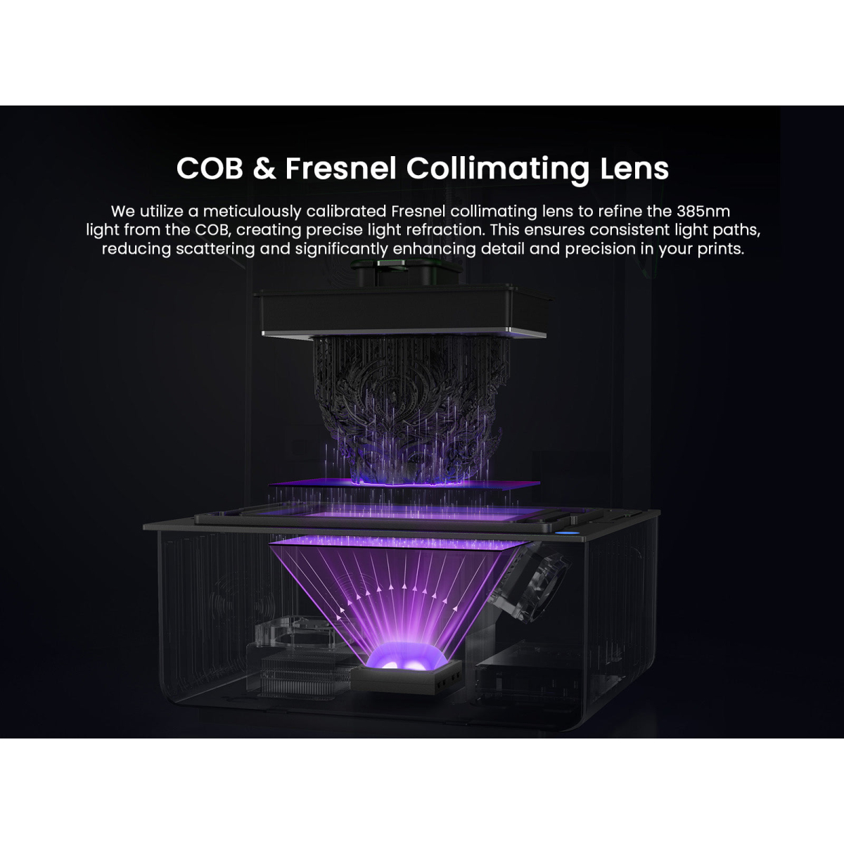 لنزهای COB (Chip-on-Board) و فرزنل به عنوان یکی از تکنولوژیهای کلیدی در چاپگر سهبعدی Uniformation GK3، وظیفه بهینهسازی نور را بر عهده دارند. این لنزها با استفاده از طراحی دقیق و کالیبراسیون حرفهای، مسیر نور را به صورت یکنواخت و مستقیم هدایت میکنند.