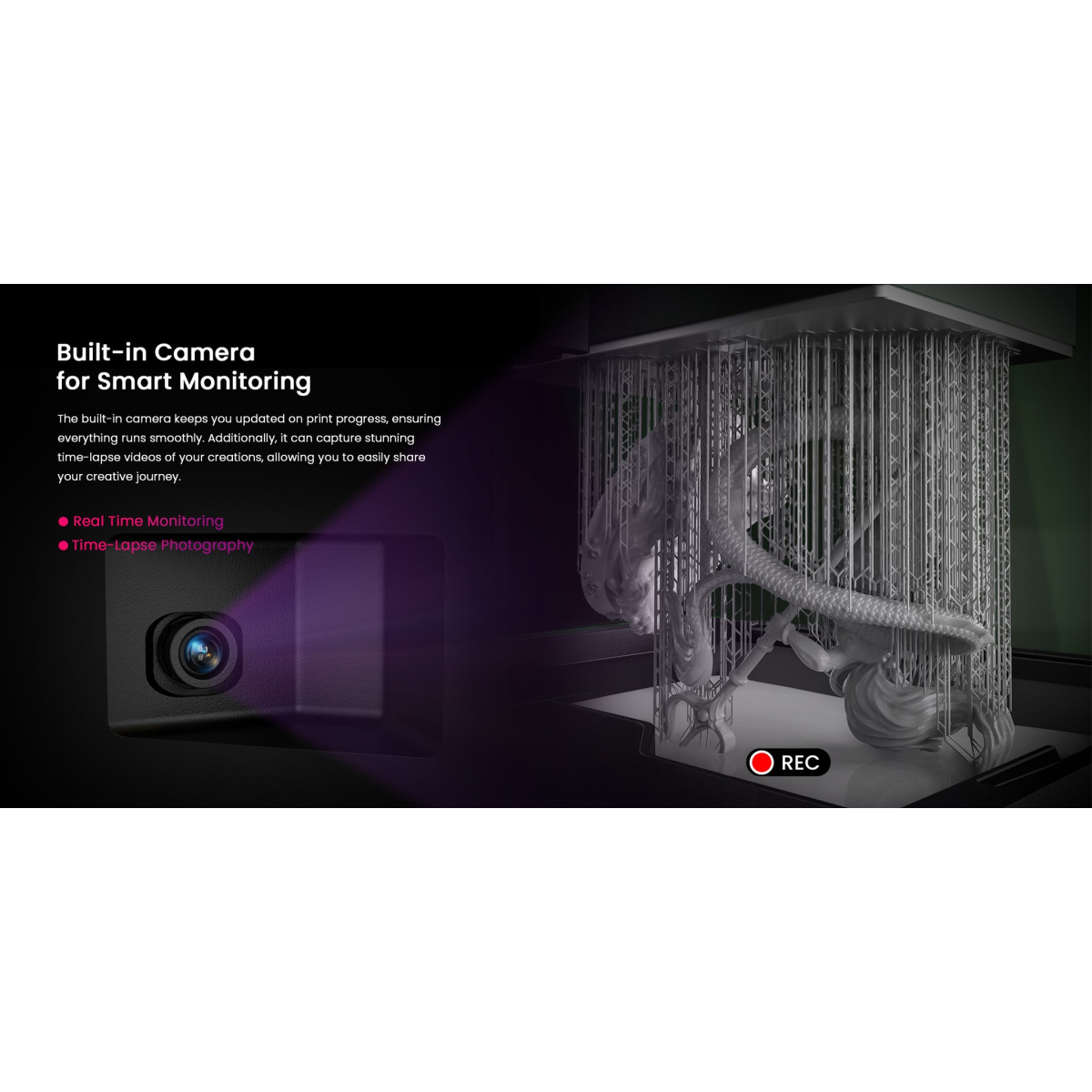- تصویربرداری تایملپس (Time-Lapse Photography): این دوربین قادر است فرآیند چاپ را بهصورت ویدیوی تایملپس ثبت کند. این ویژگی برای به اشتراکگذاری خلاقیتها و نمایش فرآیند تولید بسیار کاربردی است.