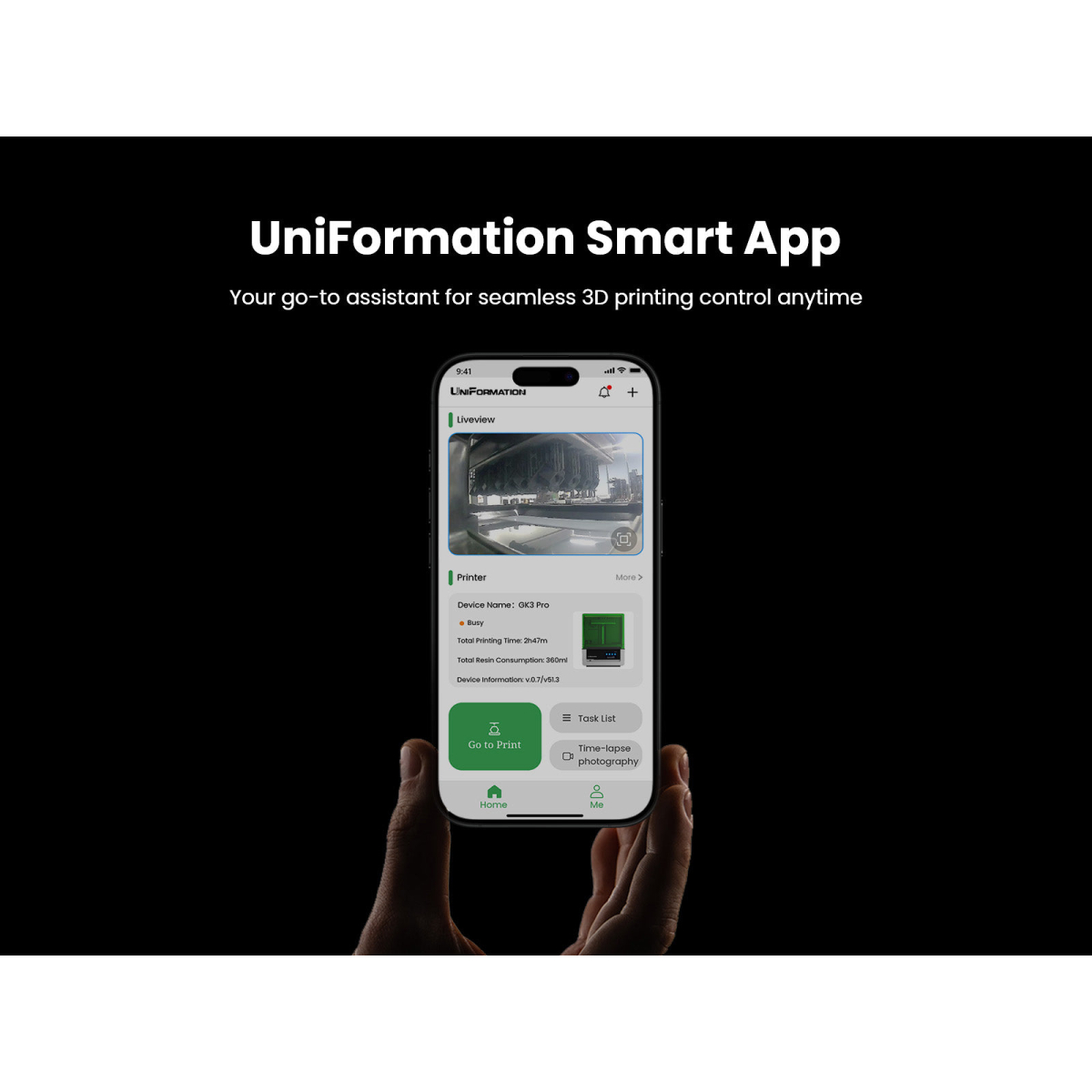 یونیفورمیشن مدل GK3 یک پرینتر سهبعدی پیشرفته است که با فناوریهای هوشمند و طراحی دقیق، چاپ سهبعدی را به سطح جدیدی از راحتی و کارایی میرساند. با اپلیکیشن هوشمند اختصاصی، شما میتوانید از هر کجا فرآیند چاپ را کنترل کنید. طراحی تخلیه رزین با Resin Drip Hanger تجربهای سریع و بدون دردسر برای پاکسازی و مدیریت رزین را ارائه میدهد، که برای کاربران حرفهای و مبتدی یک مزیت بزرگ است. صفحه نمایش لمسی با چرخش 90 درجه، تجربه کاربری را بهبود بخشیده و امکان مدیریت آسانتر تنظیمات را در اختیار کاربران قرار میدهد. این طراحی هوشمند، تعامل با دستگاه را برای تمامی کاربران آسان و جذاب میکند. Uniformation GK3، با ترکیب فناوری پیشرفته و طراحی کاربرپسند، بهترین همراه برای هنرمندان، طراحان و مهندسانی است که به دنبال کیفیت بالا و راحتی در چاپ سهبعدی هستند.