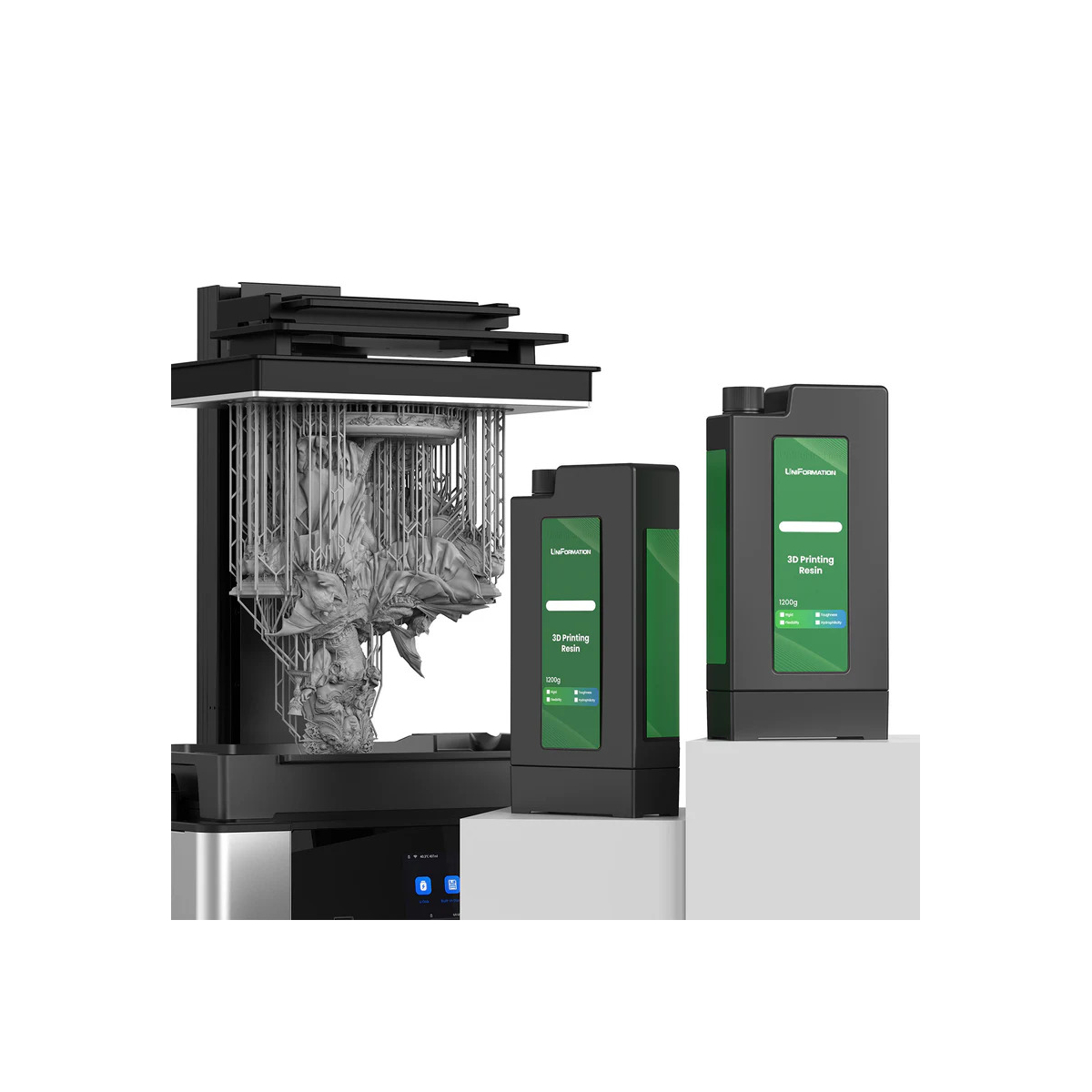 با ظرفیت 1200 گرم، امکان نگهداری مقدار زیادی رزین را فراهم میکند، که این موضوع نیاز به پر کردن مکرر را کاهش میدهد. نصب و جایگزینی این کارتریج ذخیره رزین بسیار ساده است؛ تنها کافی است آن را وصل کنید و پرینتر آماده ادامه کار خواهد بود.
