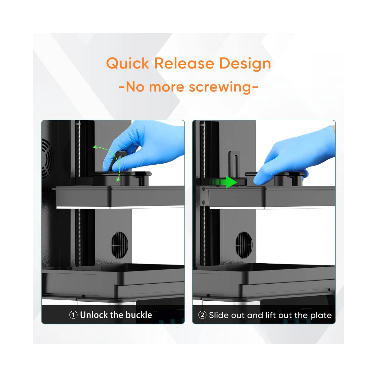 این صفحه ساخت بهطور ویژه برای پرینتر رزینی Uniformation GKTWO طراحی شده است تا عملکردی سریع و بیدردسر را برای کاربران فراهم کند. وجود شیار آزادسازی سریع در این صفحه، نیاز به پیچ کردن مداوم را حذف کرده و امکان تعویض سریع در چند ثانیه را فراهم میآورد، که در صرفهجویی زمان بسیار موثر است. شیارهای تعبیهشده در اطراف صفحه ساخت، کمک میکنند رزین هنگام برگرداندن صفحه به سمت پایین به داخل شیارها جریان پیدا کند. این طراحی هوشمندانه نه تنها تمیز کردن صفحه را آسانتر میکند، بلکه از ریختن رزین روی زمین یا میز نیز جلوگیری میکند. سطح سندبلاست شده این صفحه نیز به بهبود چسبندگی قطعات چاپشده کمک میکند، که نتیجه آن کیفیت بهتر و دقت بیشتر در فرایند چاپ است. اندازه این صفحه 228*128 سانتیمتر (5*9 اینچ) است که فضای کافی برای پروژههای مختلف را فراهم میکند. این صفحه ساخت، ترکیبی از طراحی کارآمد و عملکرد بهینه است که تجربه کاربری شما را ارتقا میبخشد.