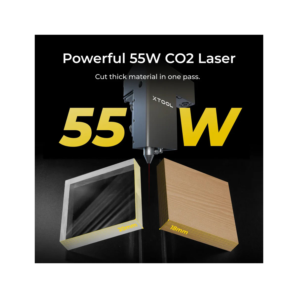لیزر برش و حکاکی Xtool P2S به یک لیزر CO₂ با توان 55 وات مجهز شده است که قدرت و کارایی فوقالعادهای برای حکاکی و برش طیف وسیعی از مواد ارائه میدهد. این لیزر با نرخ جذب عالی، امکان برش دقیق و تمیز، مواد ضخیم مانند اکریلیک ۲۰ میلیمتری و چوب گردوی سیاه ۱۸ میلیمتری را در یک نوبت فراهم میکند. این قدرت بالا به شما اجازه میدهد پروژههای پیچیده و مواد سختتر را با دقت بالا و سرعت مناسب انجام دهید، بدون نیاز به تکرار فرآیند برش.