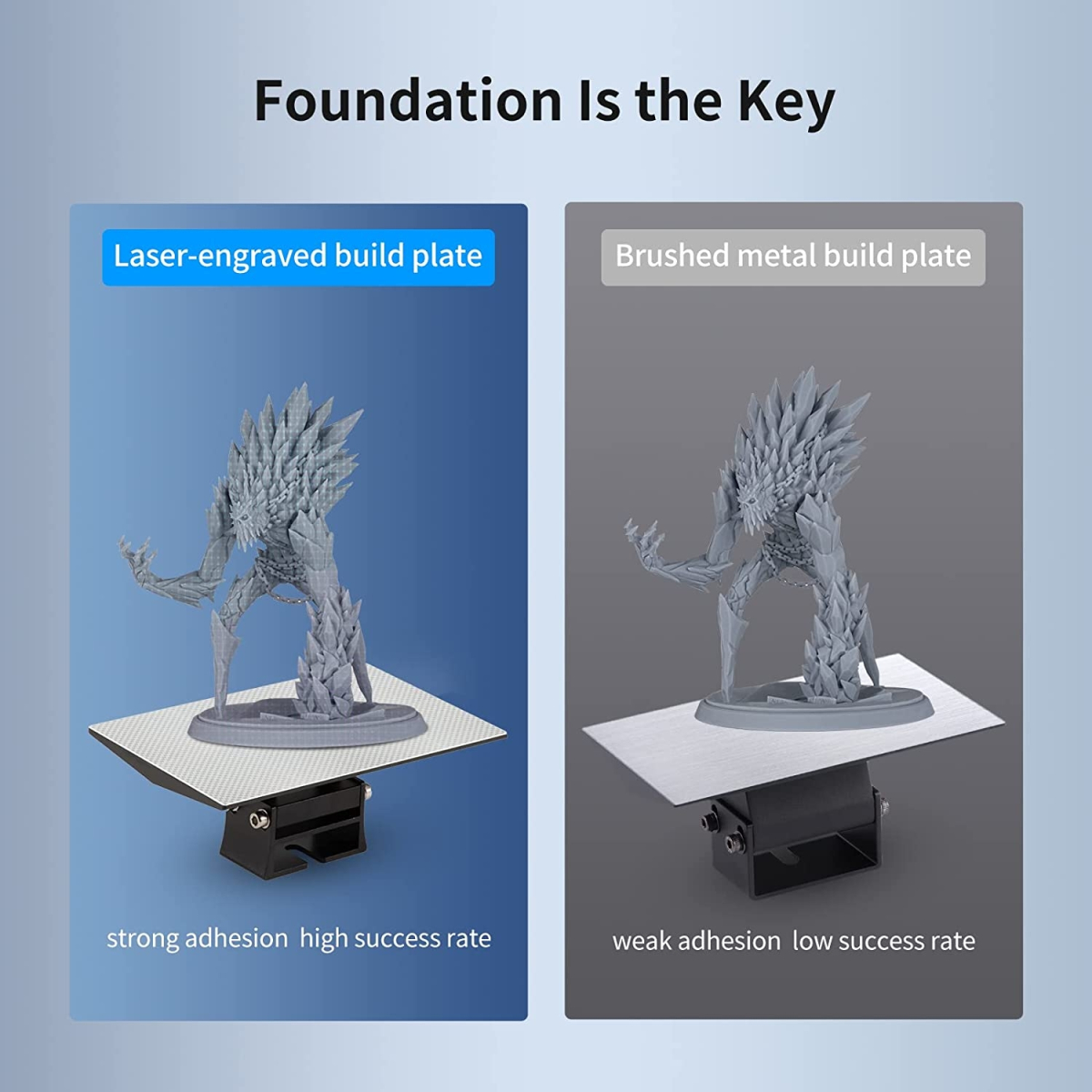 در بسیاری از پرینترهای سهبعدی درصورت رعایت همه دستورالعملها بازهم امکان شکست در چاپ سهبعدی وجود دارد اما به دلیل وجود یک صفحه حکاکی شده با لیزر در پرینتر سهبعدی Photon M3 ، میزان موفقیت چاپ سهبعدی در این مدل بسیار بالا و در حدود ۹۵ درصد میباشد؛ در واقع شما در هر ۲۰ چاپ سهبعدی تنها امکان یکبار شکست را خواهید داشت که این امر سبب شدهاست هم در مصرف رزین و زمان صرفهجویی شود و همچنین تجربه دلنشینتری را برای شما به ارمغان میآورد.