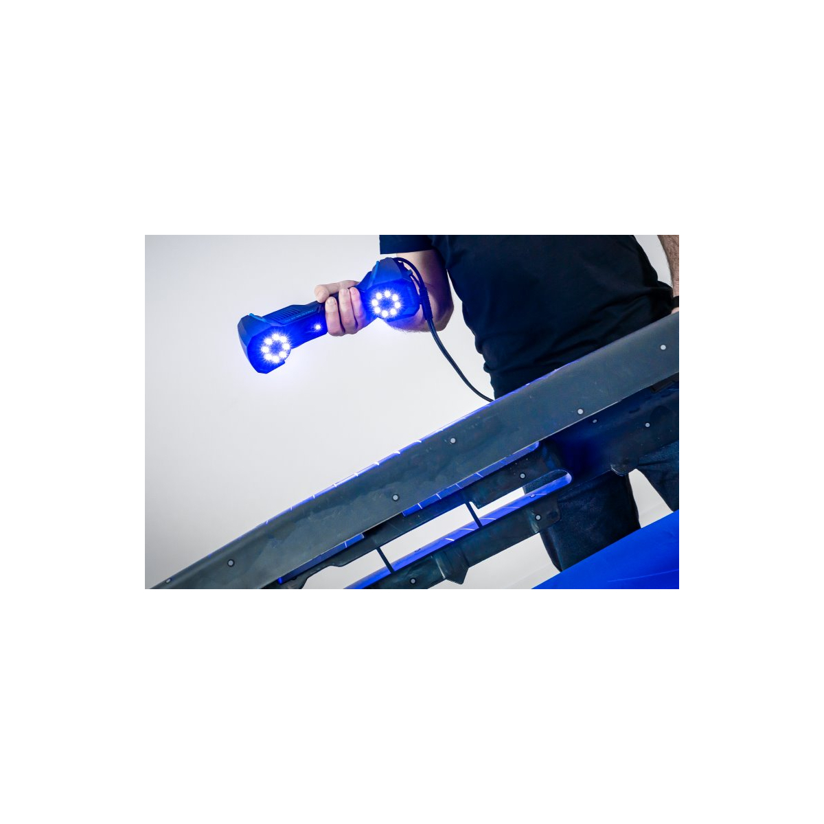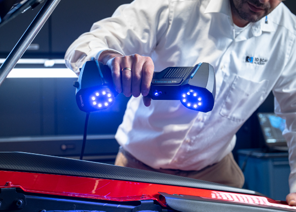 یکی از ویژگیهای برجسته این اسکنر که پیشتر به آن اشاره کردیم فوتوگرامتری داخلی آن است که به دستگاه امکان دستیابی به دقت حجمی فوقالعادهای تا0.02 + 0.015 میلیمتر در متر را میدهد. این قابلیت، اسکنر را به ابزاری قدرتمند برای ثبت دقیق موقعیتهای فضایی و جزئیات در ابعاد بزرگ تبدیل میکند. فوتوگرامتری یک فناوری پیشرفته است که از تصاویر گرفتهشده برای تعیین ابعاد و موقعیت سهبعدی استفاده میکند. در UE Pro، این فناوری به صورت داخلی پیادهسازی شده و نیازی به ابزارهای خارجی یا تجهیزات اضافی ندارد. کاربران بهراحتی با قرار دادن نشانگرها روی شیء مورد نظر و استفاده از یک میله مقیاس مغناطیسی، میتوانند موقعیت قاب هدف را به سرعت قفل کرده و اسکن حجمی دقیق انجام دهند.