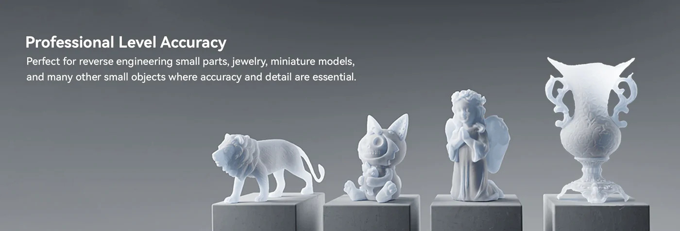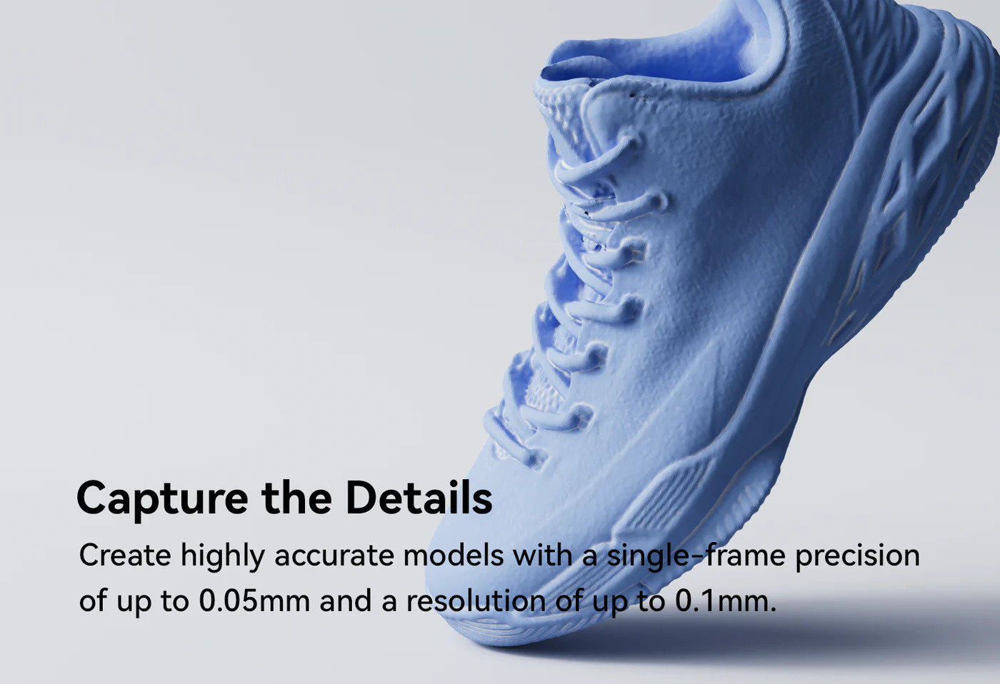 ترکیب 1 + 7 + 34 لیزر آبی به همراه NIR برای ثبت جزئیات دقیق در هر شرایط نوری.  دقت حجمی 0.02 میلی‌متر + 0.08 میلی‌متر بر متر |سرعت 90 فریم بر ثانیه و میدان دید وسیع برای اسکن سریع و دقیق. قابلیت اسکن اشیاء 5 میلی‌متر...