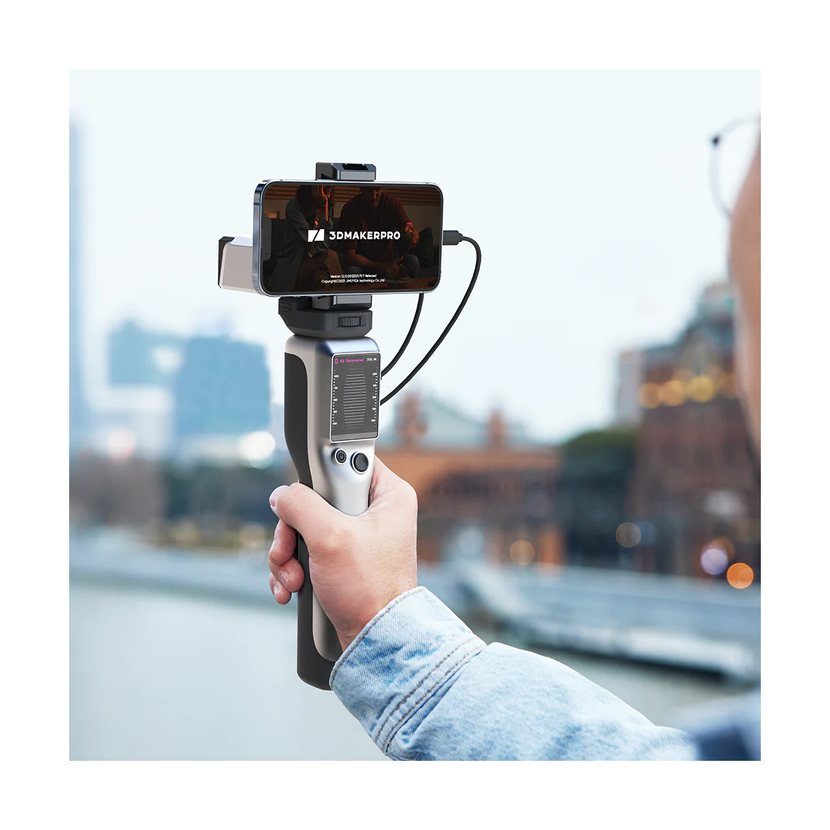 Smart Grip یک دسته هوشمند است که اسکنر Seal را به گوشی هوشمند شما متصل میکند و امکان اسکن در حرکت را فراهم میآورد. با اتصال این دسته، دیگر نیازی به کامپیوتر یا تجهیزات اضافی ندارید و میتوانید از طریق گوشی همراه خود، فرآیند اسکن را به سادگی مدیریت کنید. این ویژگی مخصوصاً برای کسانی که نیاز به اسکن سریع و در محیطهای مختلف دارند، ایدهآل است. بهعنوان مثال، یک طراح داخلی یا معماری که در حال بازدید از محل پروژه است، میتواند با استفاده از Smart Grip و گوشی همراه، به سرعت بخشهای مختلف محیط را اسکن کند و مدلهای سهبعدی را همانجا بررسی کند. یا در رویدادها و نمایشگاهها، این امکان به شما داده میشود تا بدون تجهیزات اضافی، محصولات یا نمونههای موردنظر را به راحتی اسکن کرده و ثبت کنید.