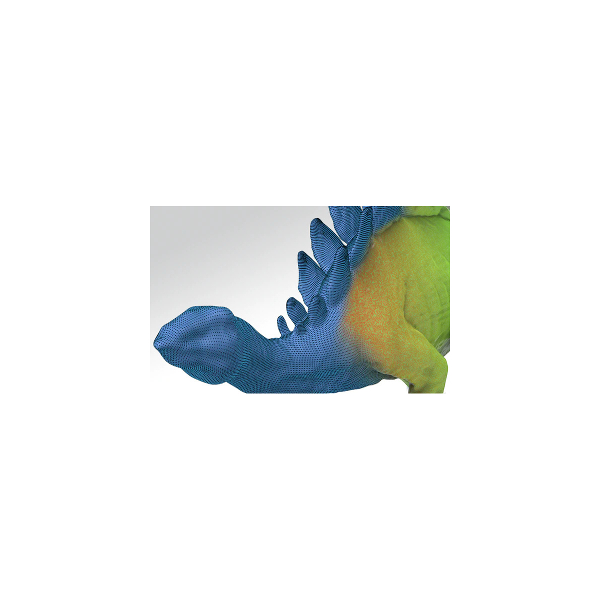 این اسکنر سهبعدی با استفاده از نور ساختاریافته کوتاهتر، در طول موج 400 تا 500 نانومتر، دقت بالایی را به ارمغان میآورد و به 0.01 میلیمتر میرسد. این نور با دقت بیشتر و طول موج کوتاهتر، قادر است کوچکترین جزئیات، فرورفتگیها، بافتها و لبهها را با وضوح بیشتری ثبت کند. فناوری پیشرفته این دستگاه، از آن در محیطهایی که نیاز به دقت بالای سهبعدی دارند، مانند پزشکی، مهندسی و طراحی صنعتی، یک ابزار ایدئال میسازد. بهعنوان مثال، در صنایع پزشکی، هنگامی که نیاز به ساخت مدل سهبعدی از اندامهای داخلی یا ساخت پروتز دقیق دارید، این سطح از دقت میتواند تفاوتهای بسیار ظریف را بهطور کامل ثبت کند. همین ویژگی در صنعت جواهرسازی هم اهمیت دارد؛ زیرا ساخت مدلهای سهبعدی دقیق از طراحیهای پیچیده و ظریف، نیازمند ثبت جزئیات بسیار ریز است که با این اسکنر به راحتی ممکن میشود. این دقت در کنار وضوح بالا، مدلهای سهبعدی بسیار واقعگرایانه و با جزئیات دقیقی ایجاد میکند که برای آنالیز، طراحی یا بازسازی بسیار کاربردی است.