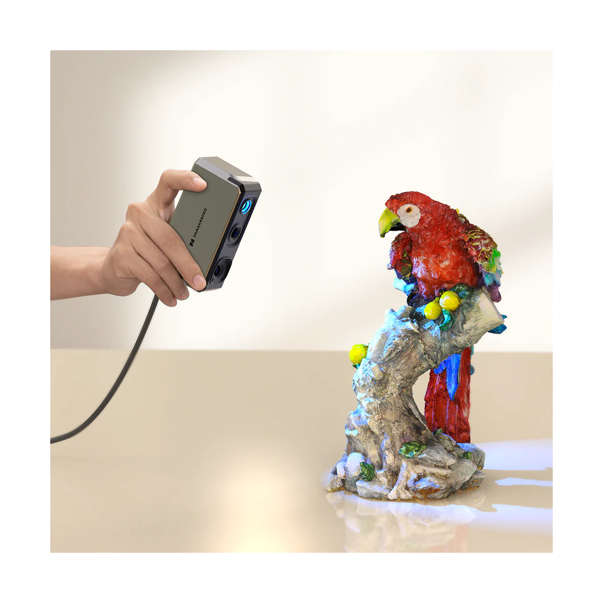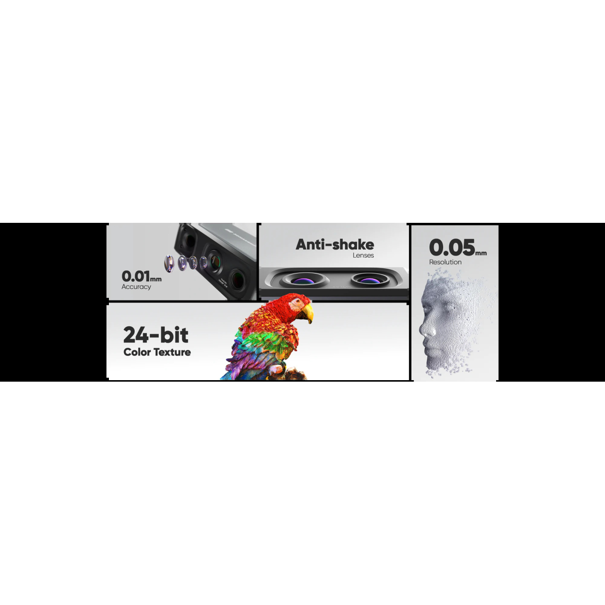 این اسکنر سهبعدی پیشرفته، با بهرهگیری از فناوریهای روز و دقت فوقالعاده، ابزاری قدرتمند برای متخصصان و طراحان است که به دنبال ثبت دقیق جزئیات و ایجاد مدلهای سهبعدی با کیفیت بالا هستند. این دستگاه با دقتی بینظیر، حتی کوچکترین فرورفتگیها و بافتها را نیز با وضوح بالا ثبت میکند و تصاویر و مدلهایی با رزولوشن 0.05 میلیمتر ارائه میدهد. یکی از نقاط قوت این اسکنر، سرعت فوقالعاده آن است که ، فرآیند اسکن را به طرز چشمگیری تسریع میکند. همچنین، تنظیم نور در 9 سطح مختلف، امکان اسکن دقیق در شرایط نوری و جنسهای مختلف را فراهم میسازد، که برای محیطهای متنوع و سوژههای گوناگون بسیار کاربردی است. با طراحی سبک و بیصدا، این اسکنر بهراحتی قابل حمل است و تجربهای روان و بدون صدا در اسکن را تضمین میکند. ویژگیهای پیشرفته این دستگاه آن را به ابزاری ایدئال برای کاربردهای صنعتی، پزشکی، طراحی سهبعدی و حتی تحقیقاتی تبدیل کرده است.