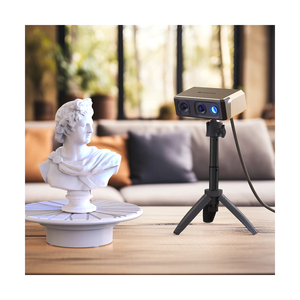 Multi-Axis Turntable یک صفحه چرخان چند محوره است که اسکن اجسام را بهصورت خودکار انجام میدهد و به کاربران اجازه میدهد بدون نیاز به تجربه قبلی، به کیفیت حرفهای در اسکن برسند. این صفحه چرخان با قابلیت حرکت در چندین محور مختلف، سوژه را در زوایای متعدد چرخانده و تمام جزئیات آن را بهطور کامل ثبت میکند. این فرآیند خودکار، خصوصاً برای مبتدیان، امکان دستیابی به نتایج باکیفیت و دقیق را فراهم میآورد. برای کاربران حرفهای و باتجربه، Multi-Axis Turntable امکانات پیشرفتهای نیز ارائه میدهد؛ از جمله قابلیت ویرایش اسکریپتها برای تنظیمات سفارشی. به این ترتیب، کاربران متخصص میتوانند اسکنهای پیچیدهتری را برنامهریزی کنند و تنظیمات چرخش و توقف را با جزئیات بیشتری سفارشیسازی نمایند.