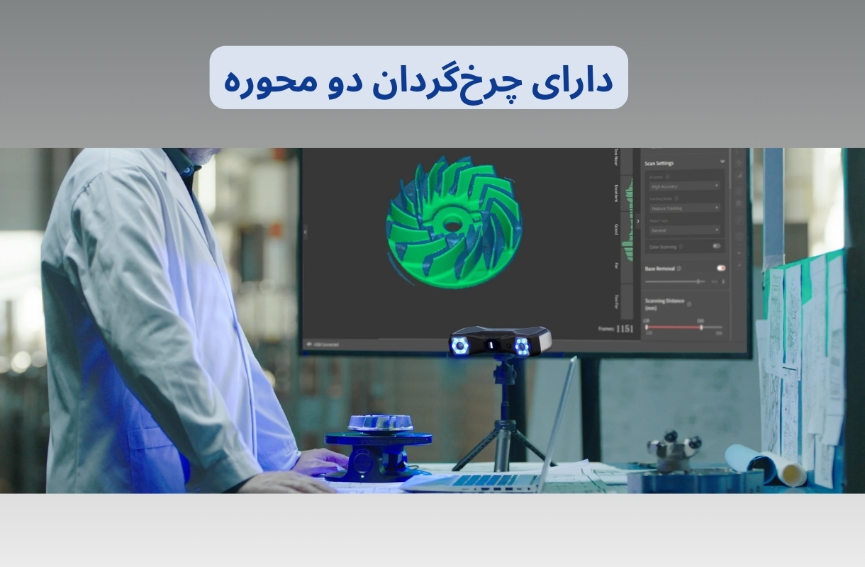 با قابلیت Auto Turntable Scanning در اسکنر سهبعدی رووپوینت مدل MetroX 3D، فرآیند اسکن به طور کامل خودکار میشود. تنها با یک کلیک ساده، صفحه گردان دو محوره (Dual-axis Turntable)، نرمافزار Revo Scan و دستگاه MetroX به طور هماهنگ شروع به کار میکنند تا اسکن را به پایان برسانند. این سیستم پیشرفته به شما کمک میکند تا مدلهایی با کیفیت متریولوژی (دقت صنعتی) تولید کنید، بدون نیاز به مداخله دستی یا تنظیمات پیچیده. نتیجه، مدلهایی دقیق و بینقص است که به سرعت و با کمترین تلاش آماده میشوند.