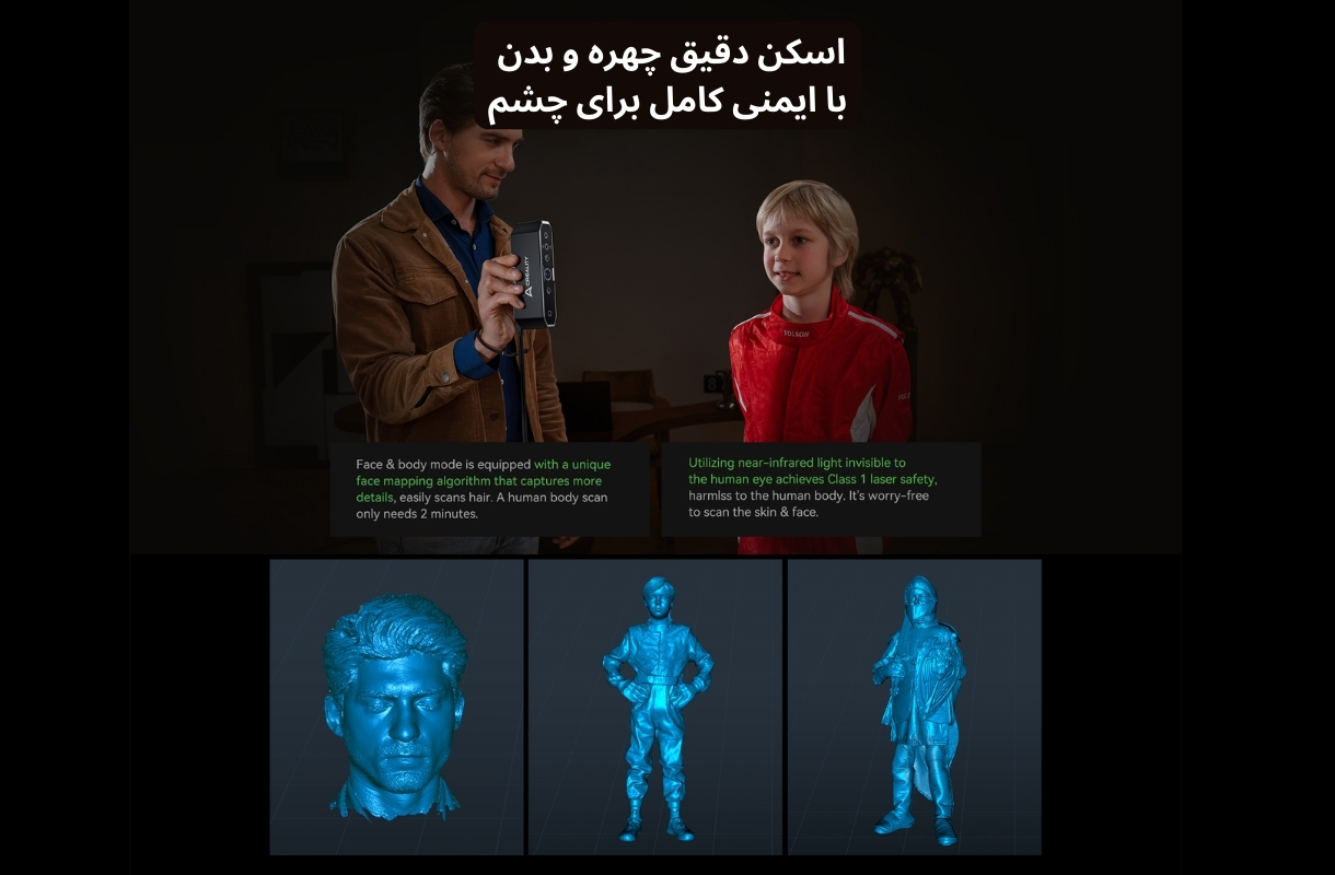 مناسب برای اسکن بدن انسان ثبت مو، خطوط صورت و جزئیات کوچک بدون افت کیفیت