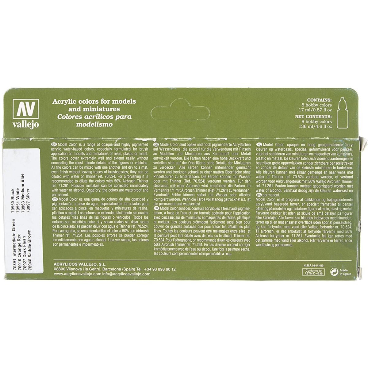 پک 8 عددی رنگ مخصوص ایر براش والجو مدل Color Wargames Basics Acrylic Paint برند Vallejo