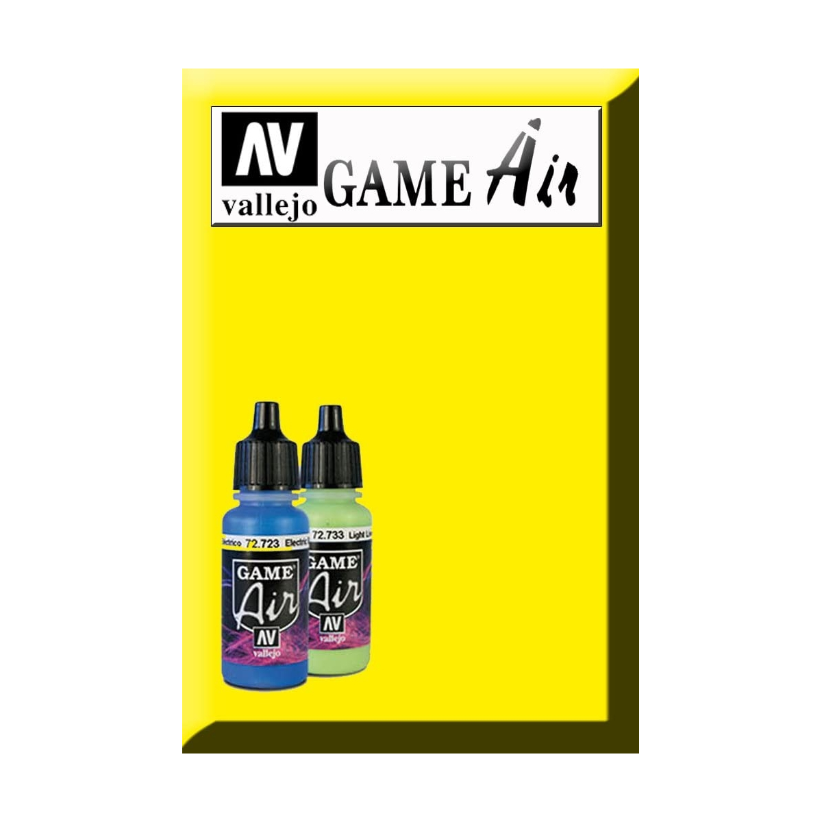 اینها رنگهای برس اکریلیک از پیش رقیق شده از Acrylicos Vallejo هستند، رنگهای مبتنی بر آب غیر سمی و غیر قابل اشتعال هستند و در یک بطری قطره چکان 17 میلی لیتری عرضه می شوند که از ریختن آن جلوگیری می کند. Game Air برای استفاده وارگیمرها طراحی شده است و برای ایربراش کردن چهره ها از هر سبک بازی مناسب است. Game Air را می توان با آب رقیق کرد و همه رنگ ها را می توان با یکدیگر مخلوط کرد. این محصول فاقد حلال بوده و قابل اشتعال نیست. رنگ ها حاوی رنگدانه های سربی و مواد مضر برای سلامتی نیستند. خطا را می توان بلافاصله با آب یا با مقدار کمی الکل اصلاح کرد. پس از خشک شدن رنگ، ضد آب و دائمی است.