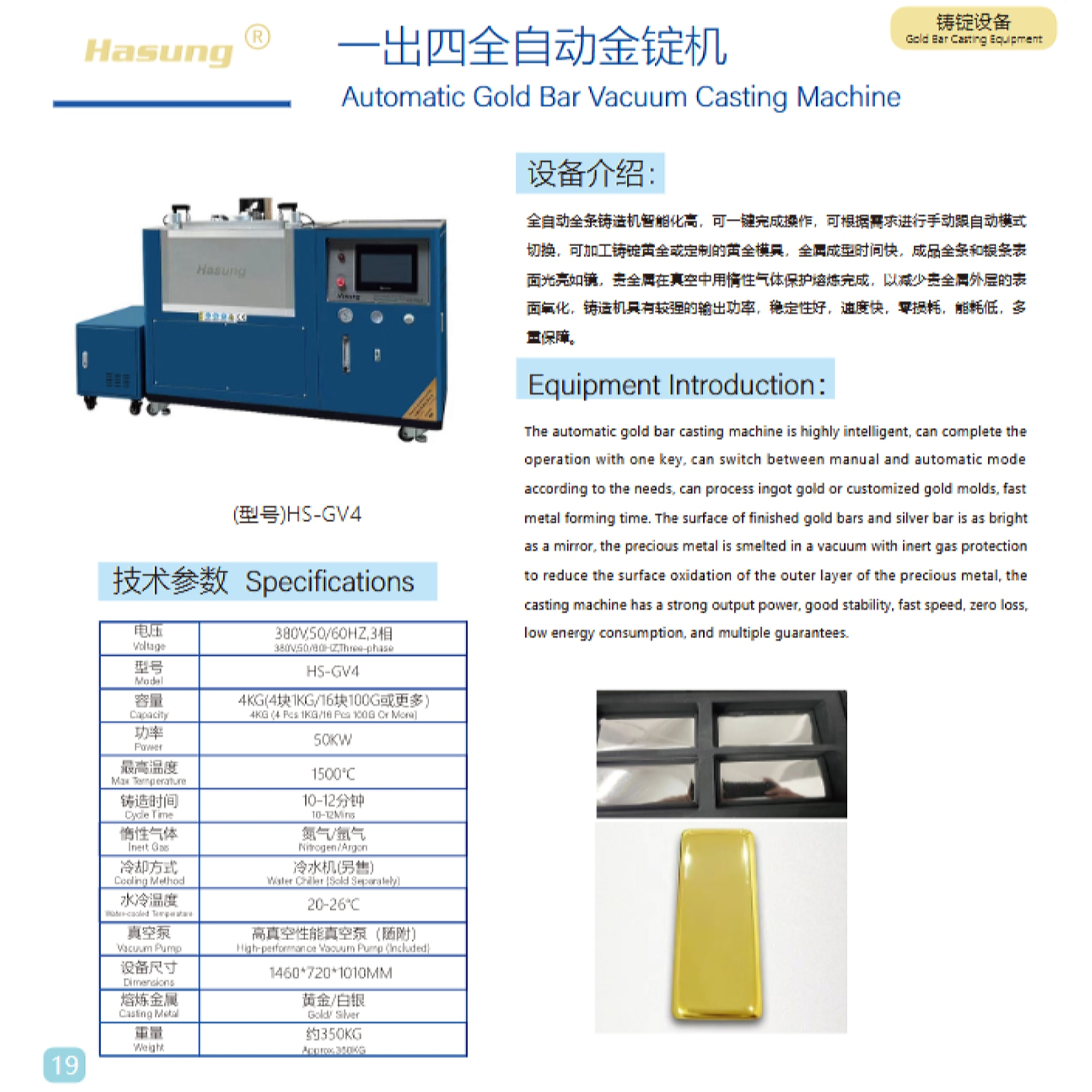 دستگاه ریخته‌ گری تحت خلاء شمش طلا هاسونگ مدل Automatic Gold Bar Vacuum Casting Machine HS-GV4 برند Hasung