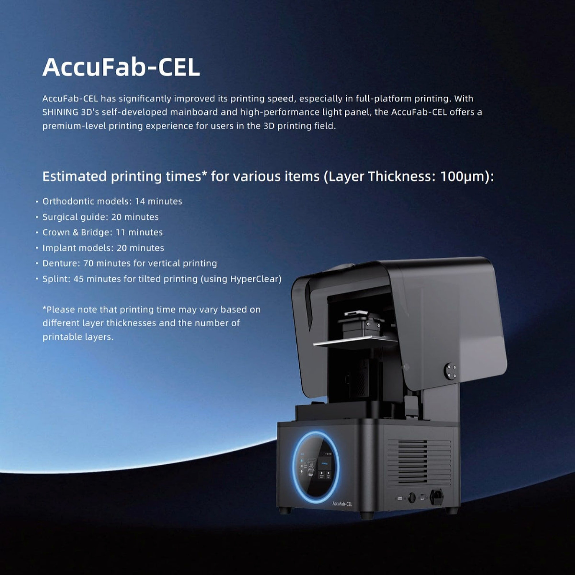 ویژگی‌های پرینتر سه بعدی دندان شاینینگ تری دی مدل AccuFab-CEL برند Shining 3D
