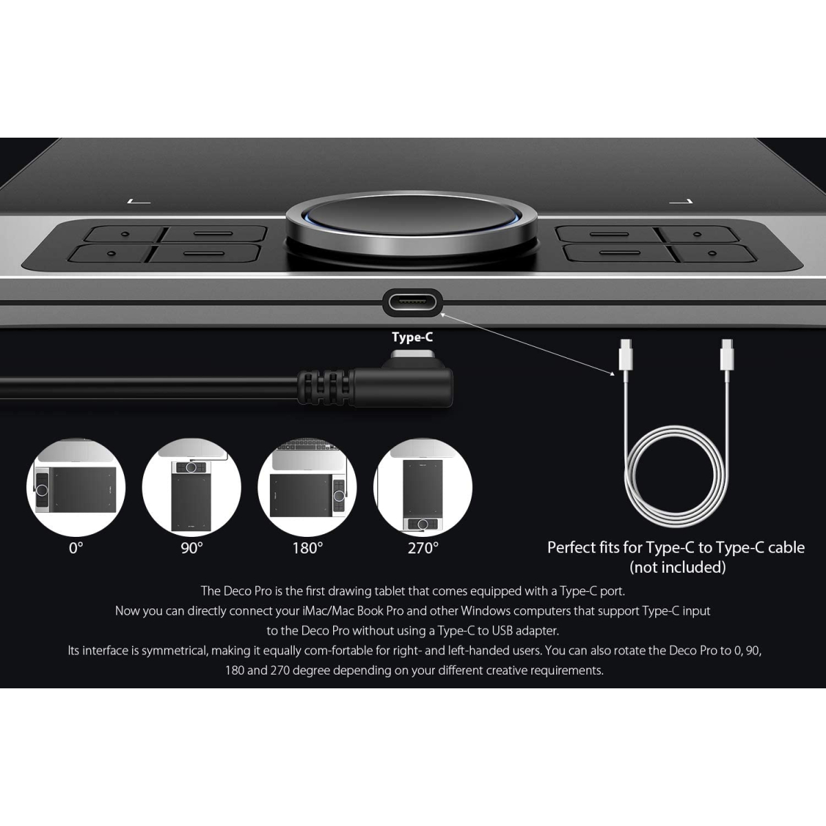 تبلت طراحی Deco Pro S با قابلیت کار در زاویههای مختلف 0 درجه، 90 درجه، 180 درجه و 270 درجه انعطافپذیری فوقالعادهای را برای کاربران فراهم میکند. این ویژگی به این معناست که شما میتوانید تبلت را در هر زاویهای که برایتان راحتتر است، بچرخانید و از آن استفاده کنید. چه به صورت عمودی، چه افقی، یا حتی در حالتهای میانی، این تبلت به شما اجازه میدهد که صفحه طراحی را مطابق با ترجیح و عادات کاری خود تنظیم کنید.
