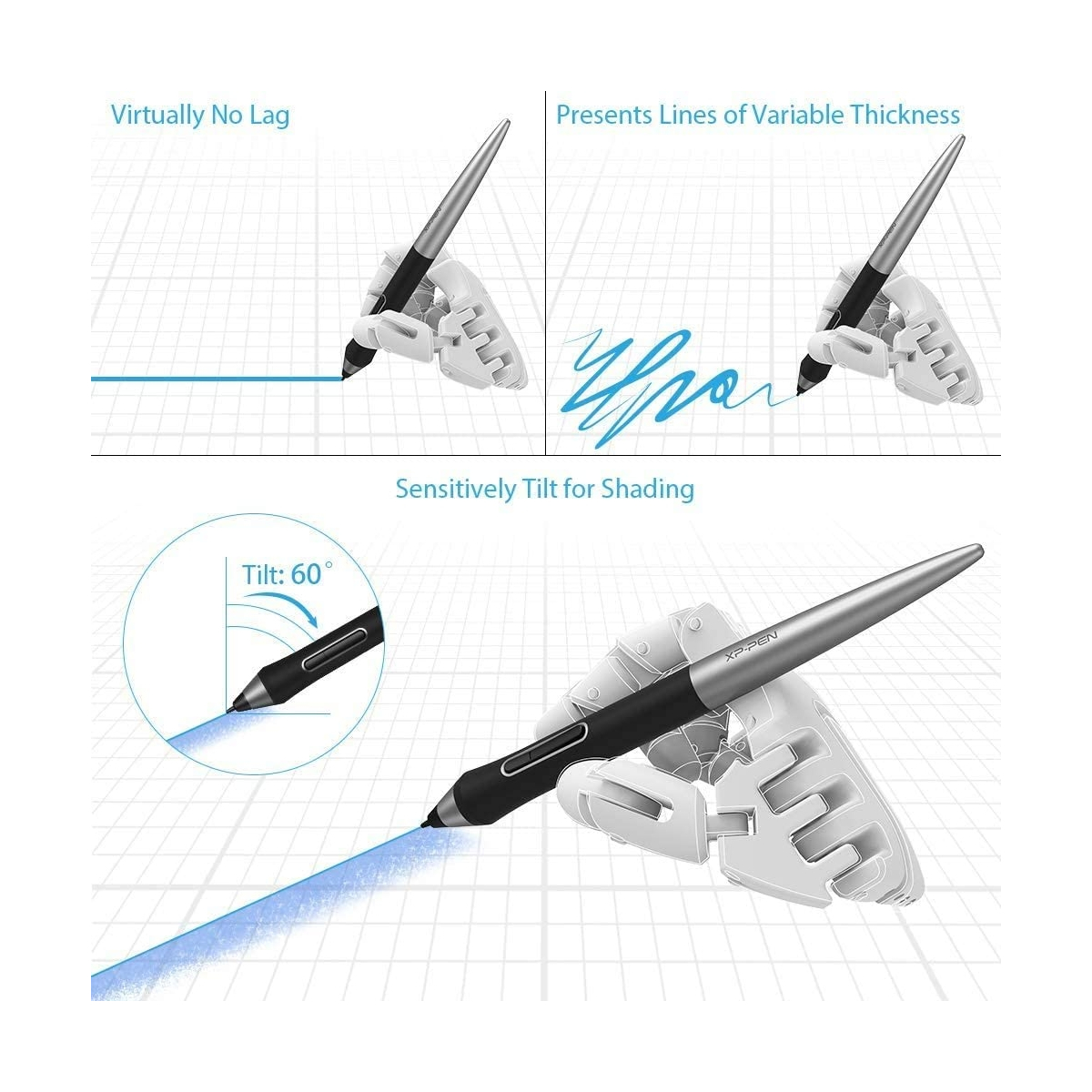 وزن این قلم تنها 13.3 گرم است که آن را فوقالعاده سبک و راحت برای استفاده طولانیمدت میسازد. این وزن کم باعث میشود که طراحان و هنرمندان دیجیتال بدون خستگی بتوانند ساعتها با آن کار کنند. علاوهبراین، طراحی آن بسیار شیک و حرفهای است؛ ترکیبی از رنگهای مشکی و نقرهای که به آن ظاهری مدرن و جذاب میبخشد. نوک باریک قلم نیز کنترل دقیقتری در حین طراحی فراهم میکند و به شما این امکان را میدهد که خطوط و جزئیات را با دقت بیشتری رسم کنید.