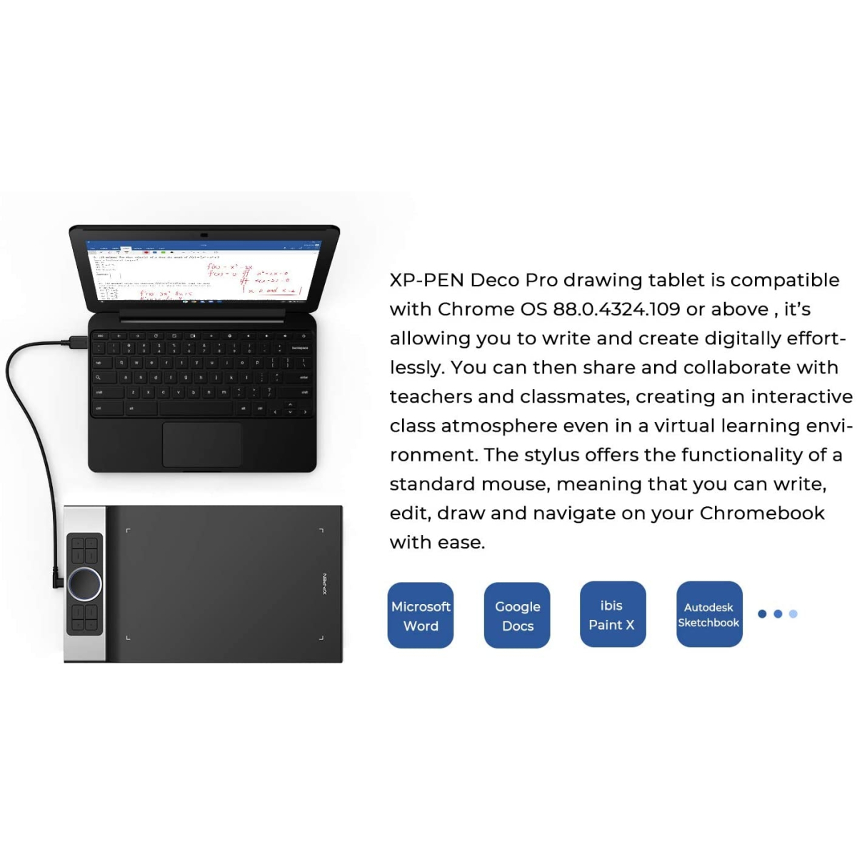 با پشتیبانی از اتصال به تبلتها و تلفنهای همراه اندرویدی و همچنین سیستمعاملهای MacOS ،Windows ،ChromeOS و Linux، مدل Deco Pro Small یکی از انعطافپذیرترین و سازگارترین ابزارهای طراحی در بازار محسوب میشود. به طور دقیقتر، با Windows 7 (یا نسخههای جدیدتر)، Mac OS X 10.10 (یا نسخههای جدیدتر)، Android 6.0 (یا نسخههای جدیدتر)، Chrome OS 88 (یا نسخههای جدیدتر) و Linux کاملاً سازگار است. همچنین، این محصول اکنون از macOS Monterey و Windows 11 هم پشتیبانی میکند.