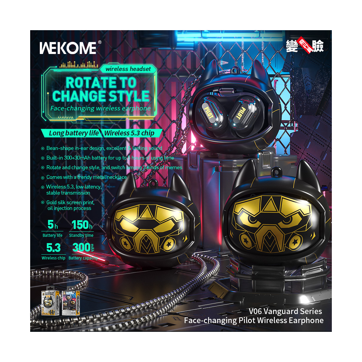 ایرپاد WEKOME مدل V06 با طراحی مدرن، شیک و اسپرت، تجربهای متفاوت را برای کاربران به ارمغان میآورد. بدنه کیس شارژ این ایرپاد به شکل یک گربه با درب چرخشی طراحی شده که با هر چرخش، چهرهای متفاوت ارائه میدهد. این ایرپاد با بلوتوث نسخه 5.3 به دستگاههای شما متصل شده و تا شعاع 10 متر اتصالی پایدار و سریعی را بر قرار میکند. باتری گوشیها با ظرفیت 30 میلی آمپر ساعت و کیس شارژ 300 میلی آمپر ساعت تنها در 1 ساعت شارژ شده و امکان استفاده مداوم تا 4 الی 5 ساعت را فراهم میکند. همچنین با 150 ساعت حالت استندبای میتوانید از انرژی آخرین باری که ایرپاد را شارژ کردید، استفاده کنید. با پورت شارژ Type-C، فرآیند شارژ سریع و سادهای دارد. درایورهای 8 میلی متری این مدل همراه با امپدانس 32 اهم و پاسخدهی صوتی 92 ± 3dB، صدایی دقیق، شفاف و قدرتمند ارائه میدهند. سیستم کنترل لمسی هوشمند مدیریت تماسها و موسیقی را آسان کرده است. پشتیبانی V06 از هر دو سیستم عامل اندروید و iOS، سازگاری بالا را تضمین میکند. این محصول با وزن سبک و طراحی ارگونومیک، در استفاده طولانی مدت به گوشها آسیب نمیرساند. برای اطلاعات بیشتر به ادامه مطلب مراجعه نمایید.