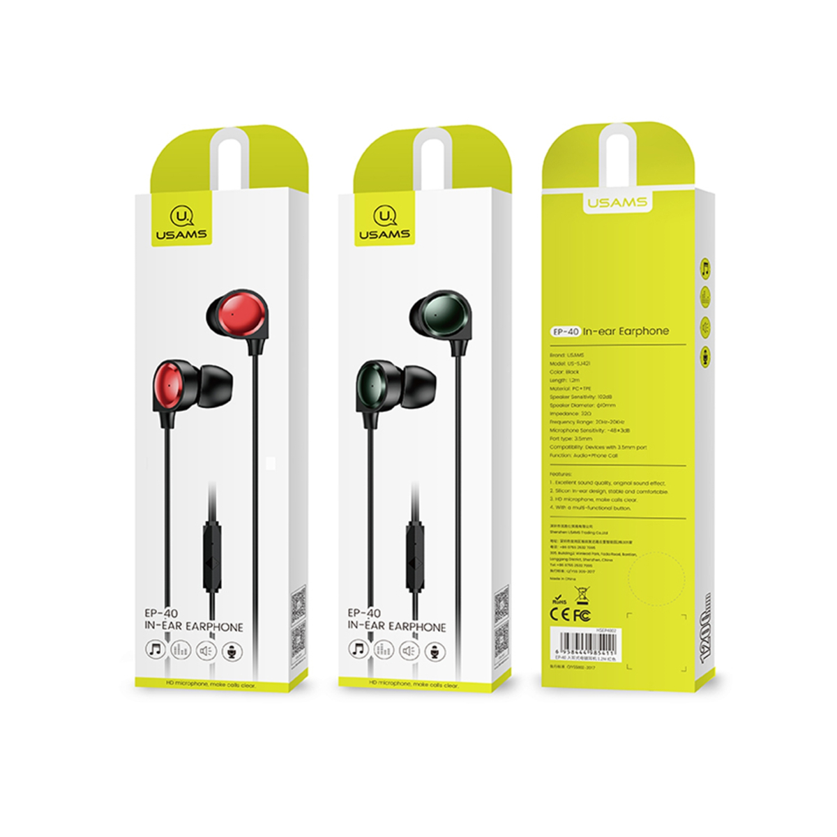 یک هندزفری سیمدار با طول سیم حدود یک متر و ساختهشده از پلاستیک PC که یکی از باکیفیتترین پلاستیکها برای ساخت هندزفری است. این هندزفری دارای جک سه و نیم میلیمتری است که در اکثر گوشیهای تلفنهمراه موجود بوده و شما بهراحتی میتوانید با استفاده از این جک آن را به اغلب گوشیها متصل کنید. دارای نویز گیر بوده و میزان نویز و خش صدا را کاهش داده و شما هنگام گوش دادن به آهنگ یک آهنگ کم نویز و زیبا را گوش میدهید. اگر قصد بازی کردن، گشتوگذار در شبکههای اجتماعی و یا تماس به تلفن را دارید، این هندزفری مناسبترین گزینه برای شما است. کیفیت صدای بسیار بالا به همراه ژلههای سیلیکونی تعبیهشده در سر هندزفری که سبب فیکس شدن کامل آن در گوش شما میشود و همچنین راحتی و طول عمر بالای این هندزفری سبب شدهاست که این هندزفری به نسبت قیمت بسیار مناسبی که دارد، یک هندزفری بسیار ارزنده به حساب بیاید. در کل اگر مایل هستید که یک هندزفری سیمدار را خریداری کنید و تلفنهمراه شما دارای پورت جک سه و نیم میلیمتری است باید گفت یکی از بهترین گزینههایی که میتوانید اقدام به خرید آن کنید هندزفری یوسامز مدل EP-40 است.