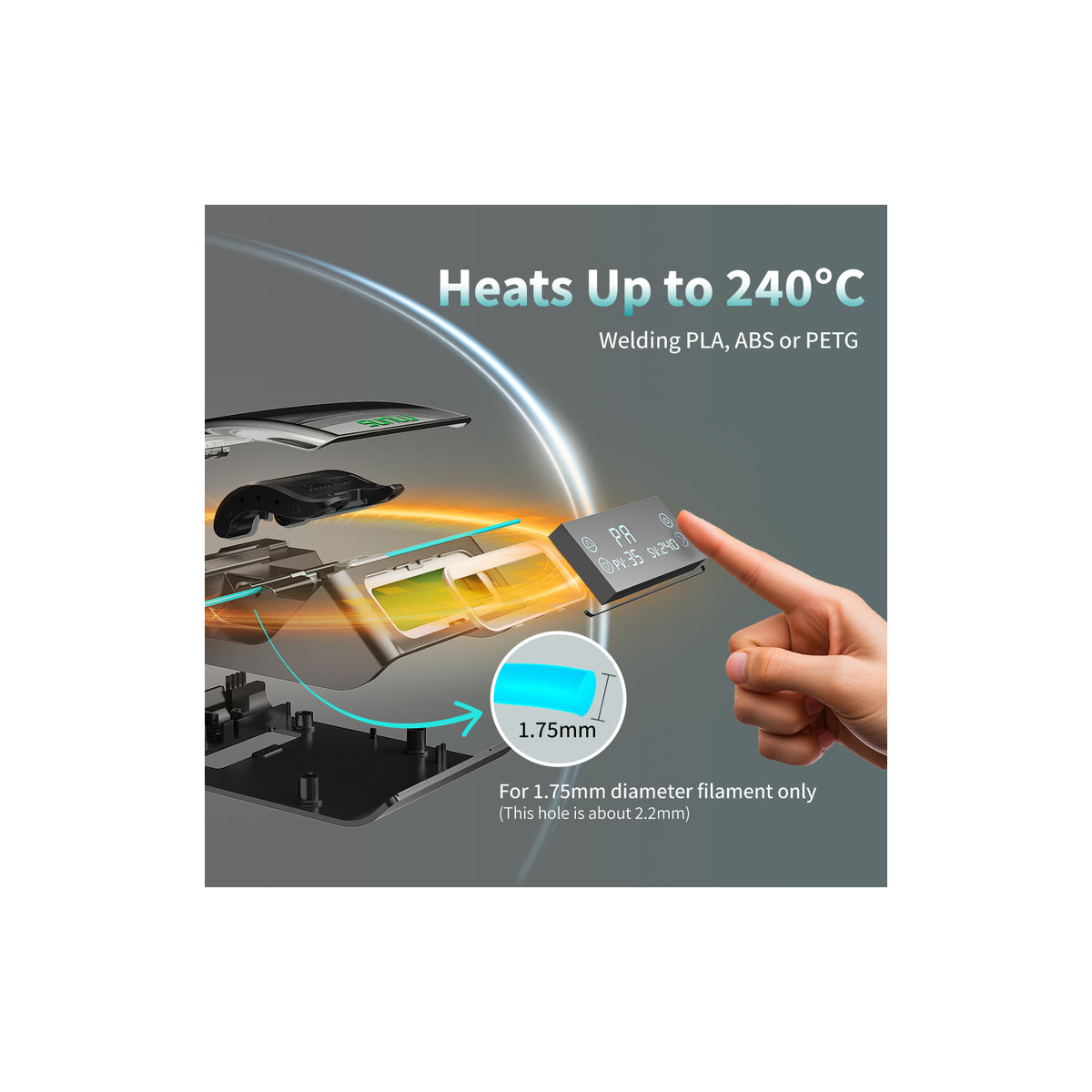 اتصالدهنده فیلامنت Sunlu FC01 قابلیت کار تا دمای ۲۴۰ درجه سانتیگراد را دارد و با انواع مواد پرینت سهبعدی مانند PLA، ABS و PETG (با قطر ۱.۷۵ میلیمتر) سازگار است. دهانه این دستگاه حدود ۲.۲ میلیمتر است که برای اتصال دقیق و کارآمد فیلامنتها طراحی شده است.