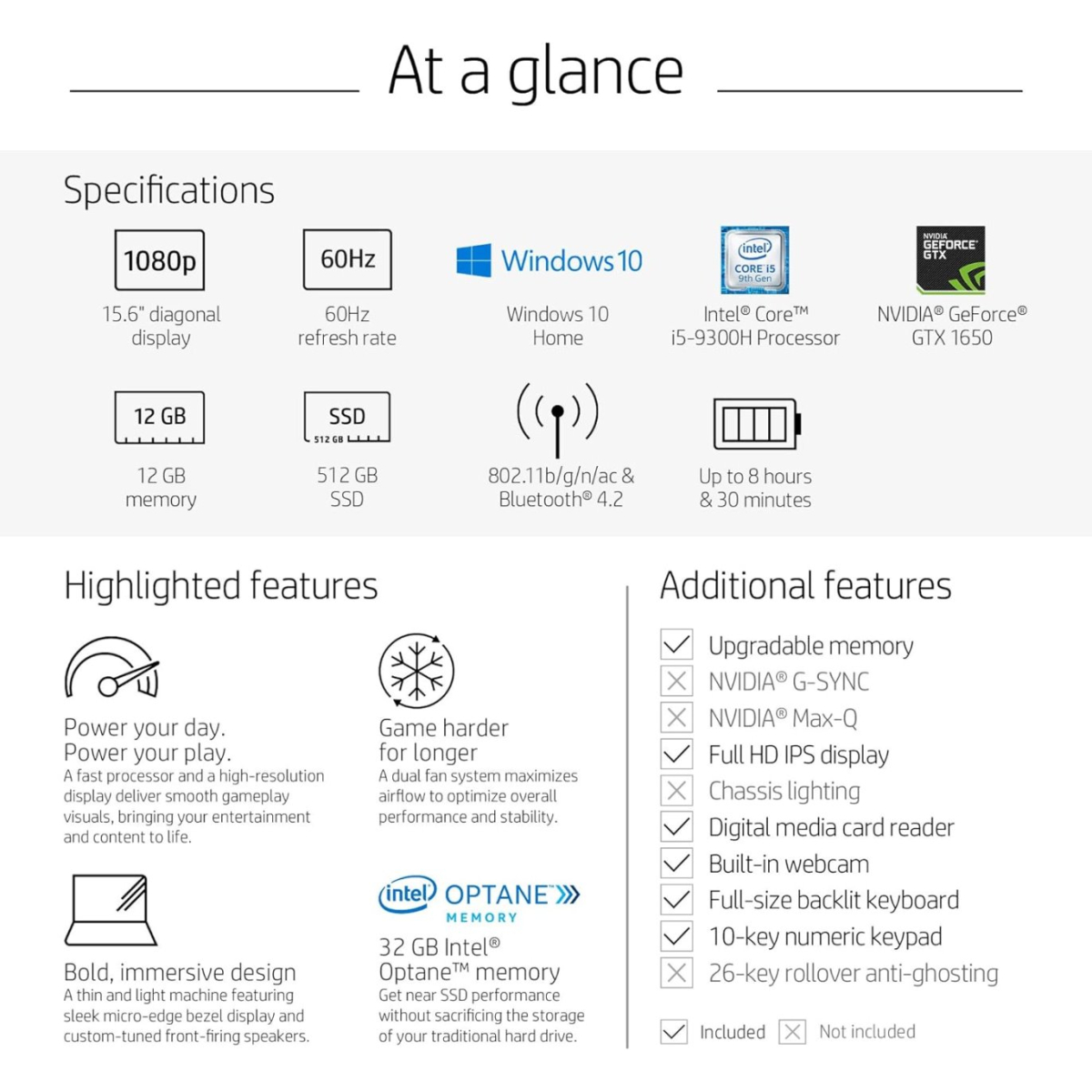 لپ تاپ 15.6 اینچی گیمینگ اچ پی مدل HP Pavilion Gaming i5 9300H GTX1650 4GB 8GB/512GB (استوک)