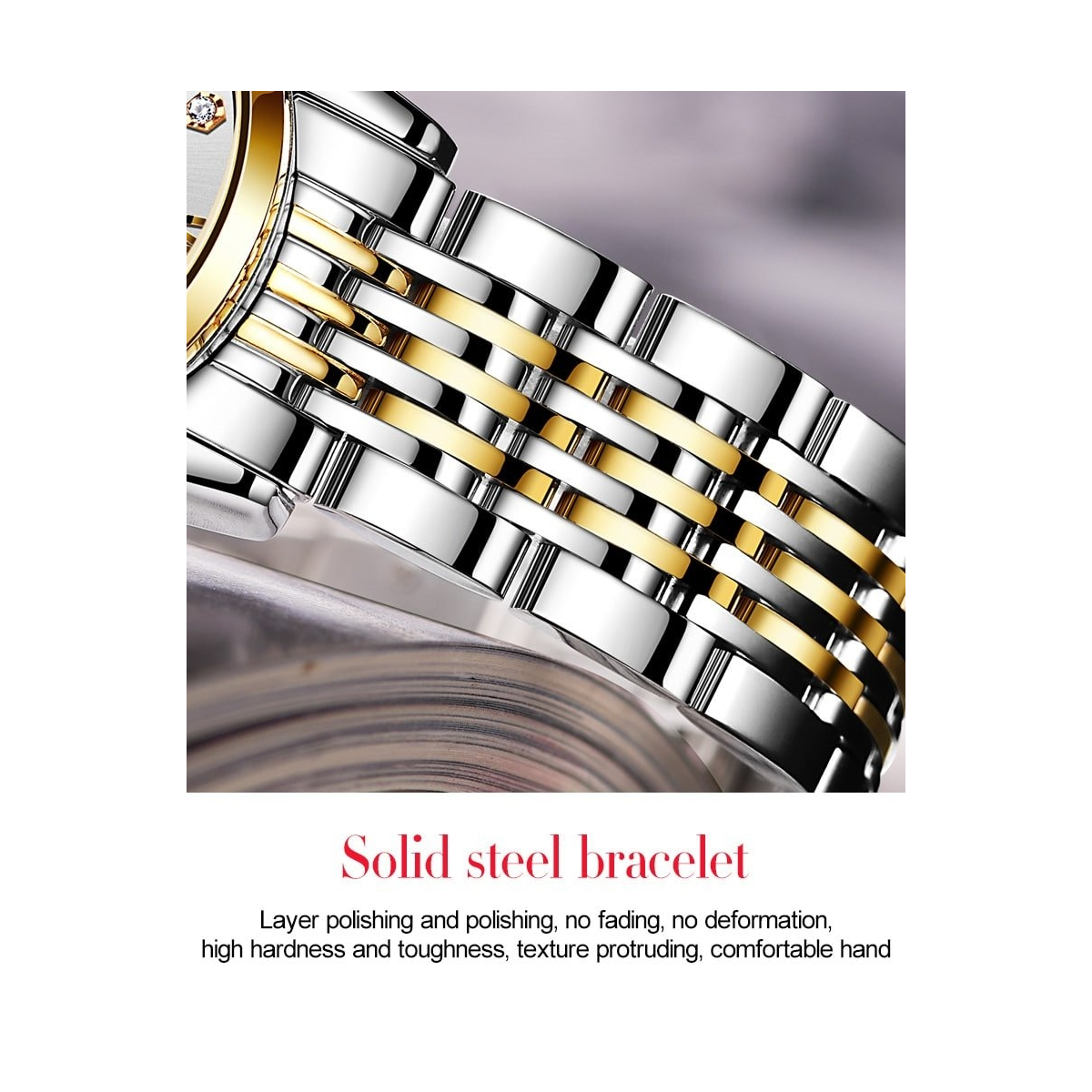 شیشه صفحه از شیشه روکش‌دار ساخته شده که شفافیت بالا و محافظت خوبی در برابر آسیب‌های روزمره دارد. بند ساعت با طول ۲۳ سانتی‌متر طراحی شده که روی مچ دست به خوبی قرار می‌گیرد. قفل آن از نوع تاشو با قفل ایمنی است که علاوه بر سهولت در باز و بسته شدن، امنیت بالایی را نیز تضمین می‌کند.