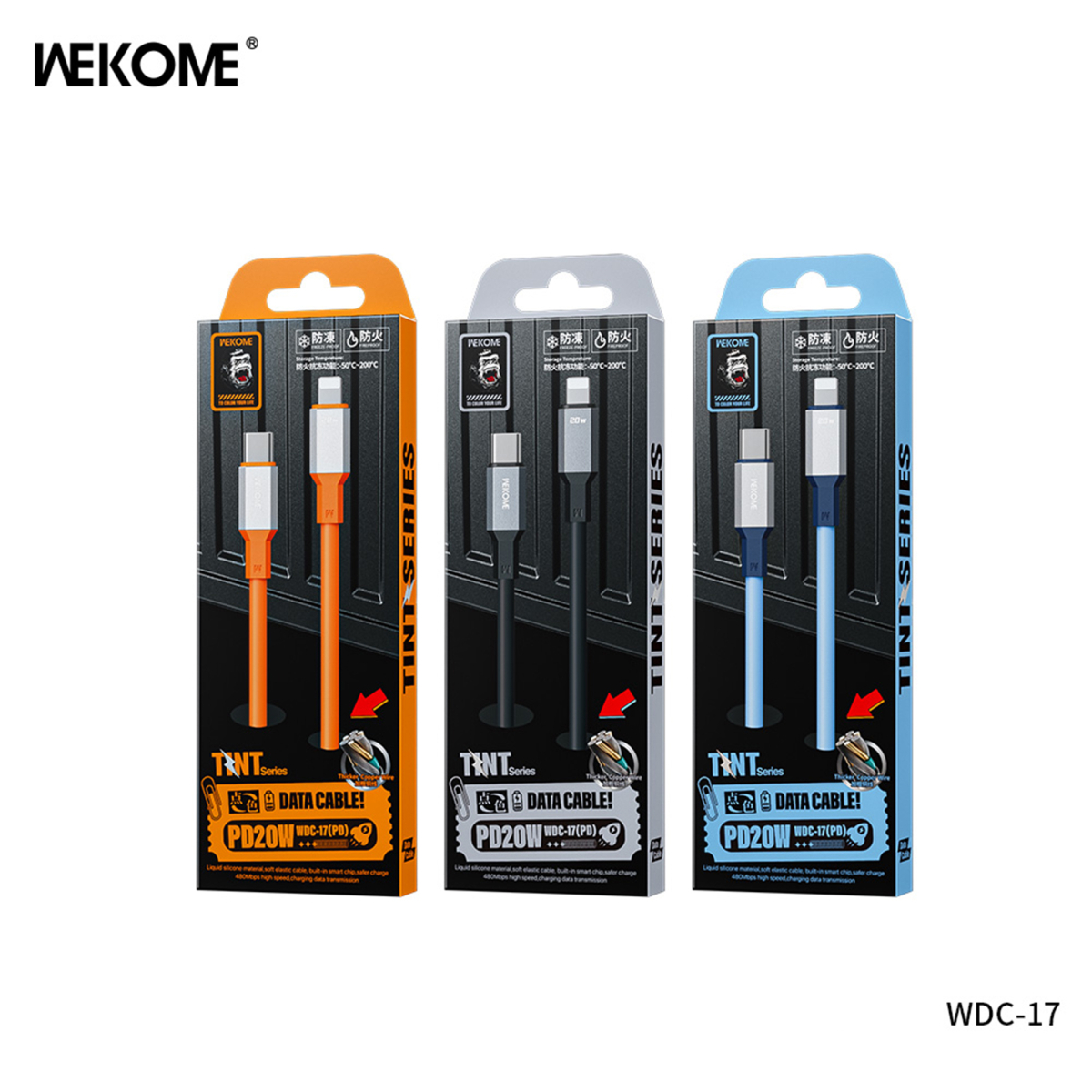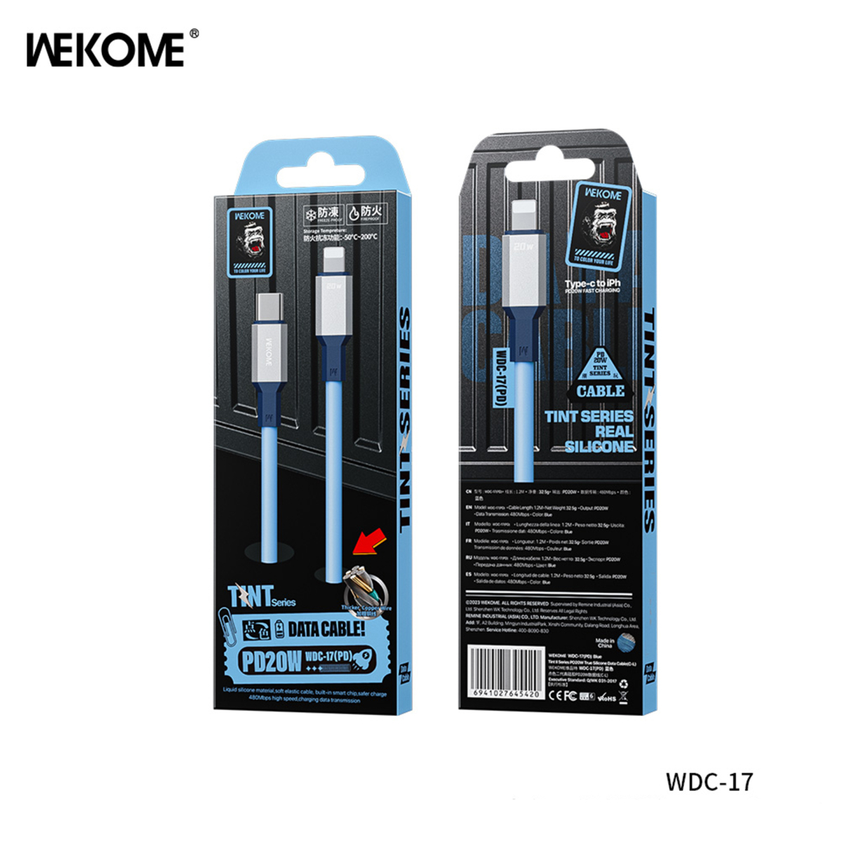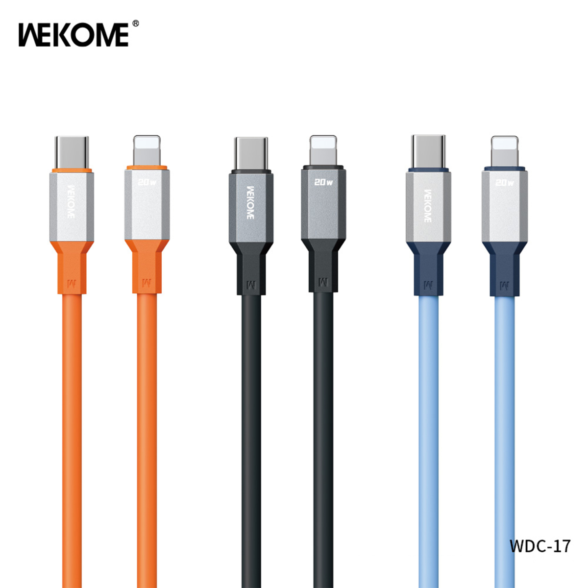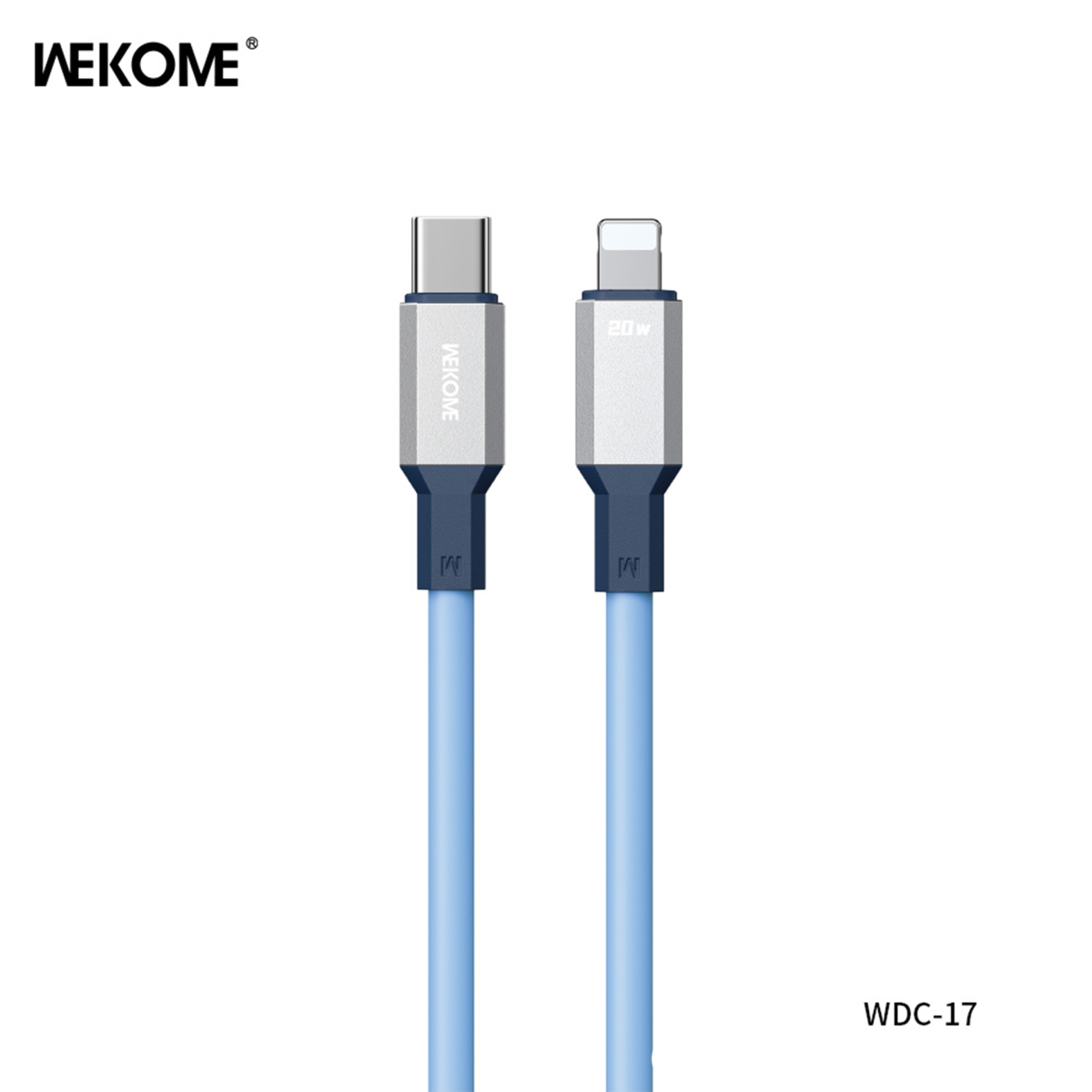 کابل شارژ PD تایپ سی به آیفون ویکام مدل WDC-17PD برند WEKOME روکش سیلیکون توان 20W طول 1.2 متر