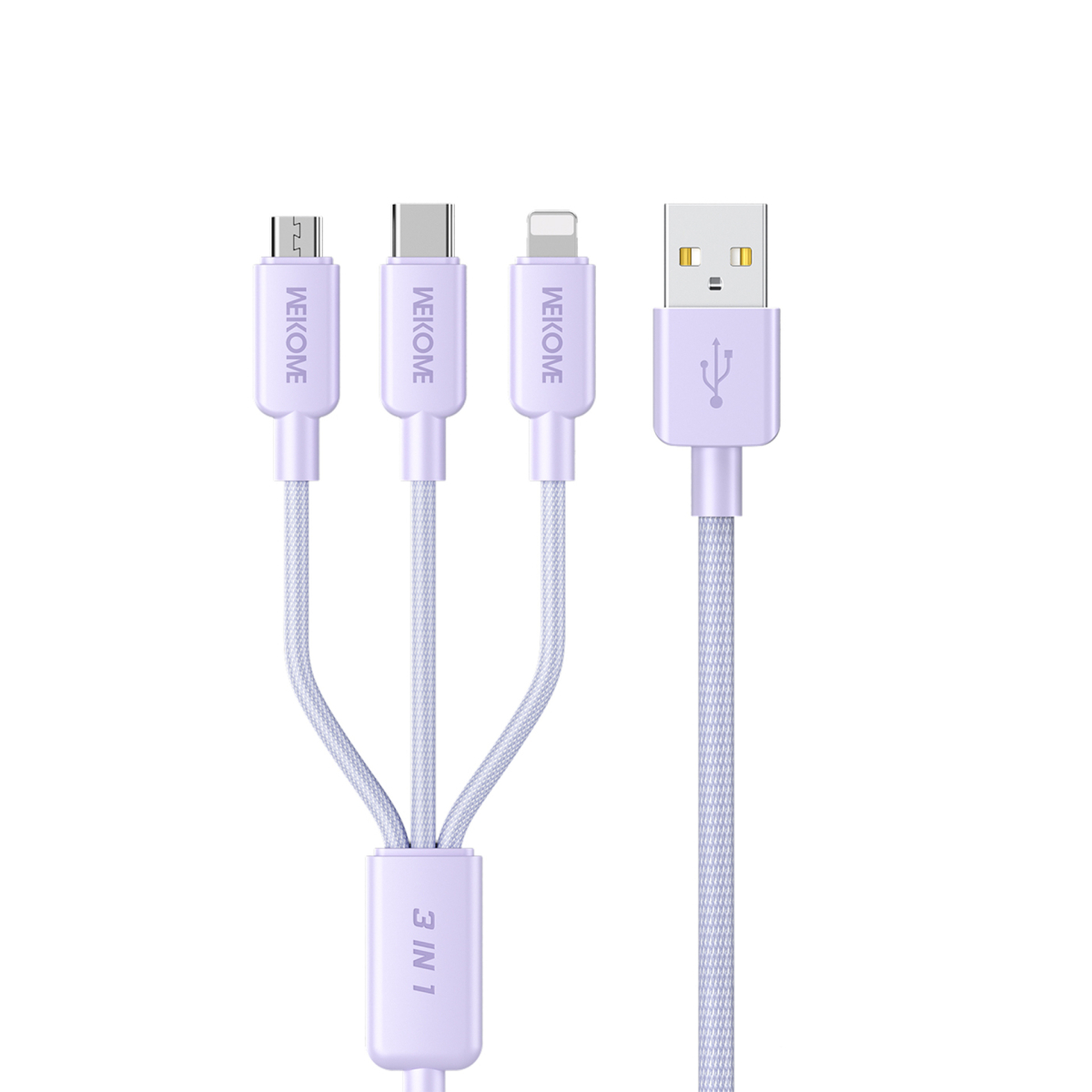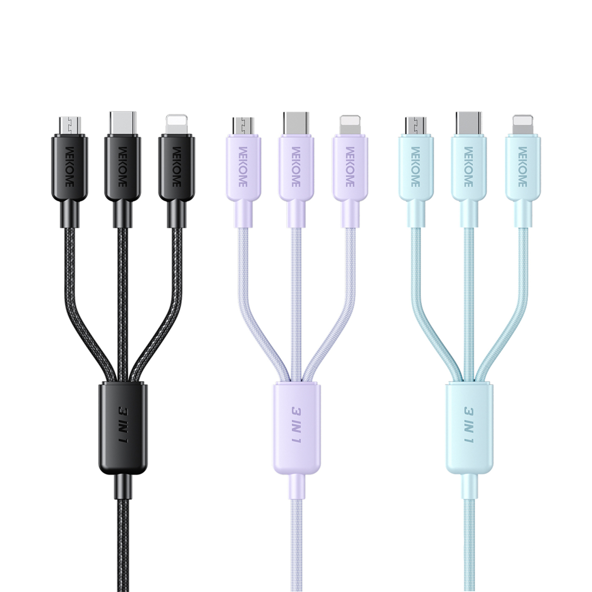 کابل شارژ ویکام مدل WDC-04 یک راهکار عالی برای کاربرانی است که چندین دستگاه با پورتهای مختلف دارند و نمیخواهند چندین کابل شارژ را با خود حمل کنند. این کابل با سه سری محبوب لایتنینگ (آیفون)، تایپسی و میکرو USB، امکان شارژ همزمان و سریع دستگاههای شما را فراهم میآورد.