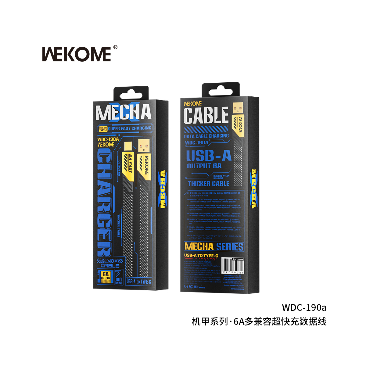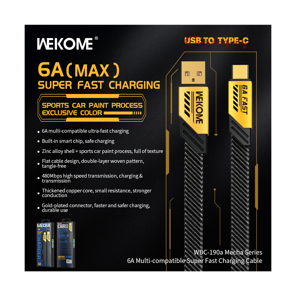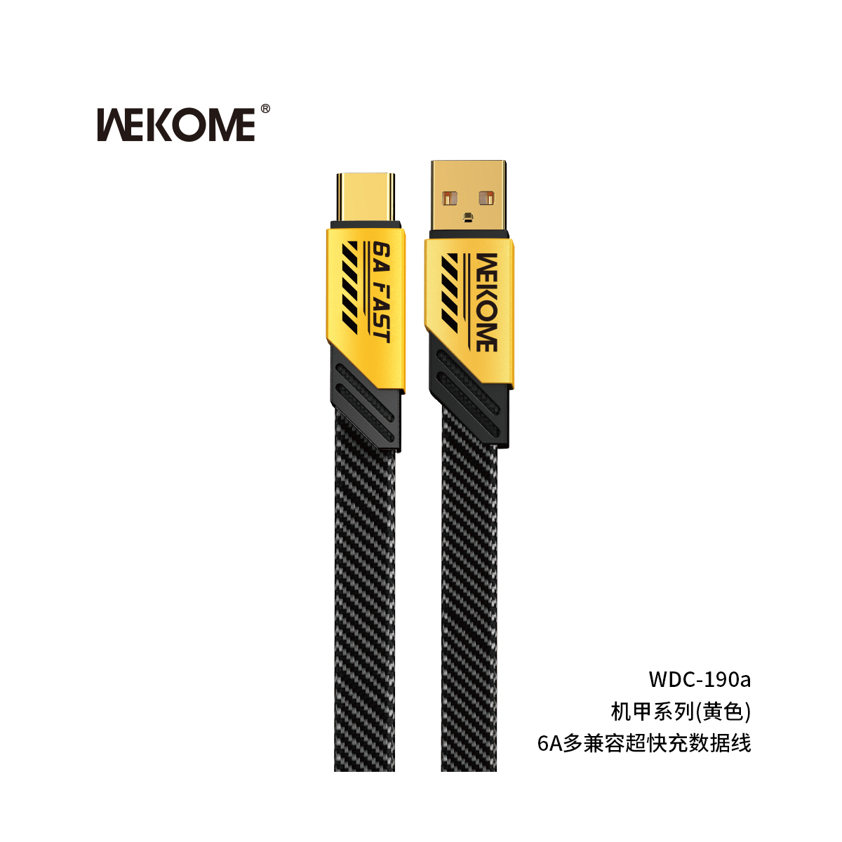 کابل شارژ تایپ سی ویکام مدل WDC-190c برند WEKOME روکش نایلون توان 6A طول 1 متر