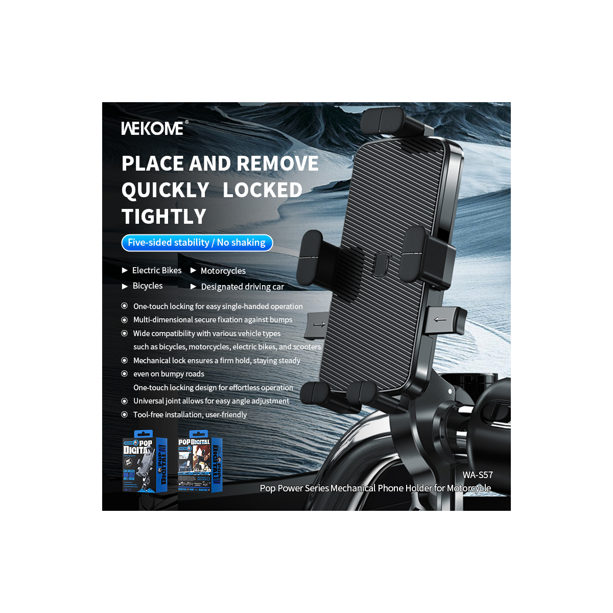 هولدر موبایل ویکام مدل WA-S57 یک ابزار ایدهآل برای موتورسواران است.