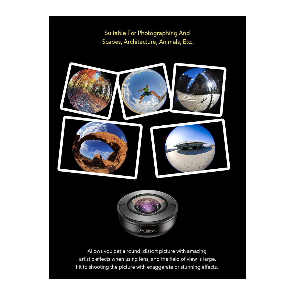 لنز Fish Eye مدل APL-HB195 مناسب برای ثبت تصاویر بسیار فانتزی و زیبا میباشد. به کمک این لنز میتوانید تصاویری بگیرید که مرکز آن بزرگتر از حد معمول و کنارههای آن کمی نازکتر از واقعیت شدهاند. دقت کنید که این محصول 195 درجه زاویه دید دارد و میتواند از حالت معمولی جزییات خیلی بیشتری را به نمایش شما در بیاورد. به همراه این محصول یک کیف حمل با کیفیت نیز ارسال میشود و میتوانید آنرا هر کجا که خواستید ببرید.